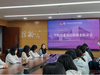 院团委书记徐媛讲话,向新团员表示祝贺并提出期望:一是重视学习、勤于学习、善于学习党的创新理论,强化理论武装;二是发挥模范作用,带头参与集体事务、志愿服务;三是坚定理想信念,积极向党组织靠拢。