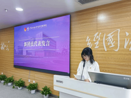 新团员代表、2024级会计学专业宁馨发言,表达了加入团组织的光荣与自豪,表示将以团员标准严格要求自己,以认真严谨的态度深耕学业,不断追求思想进步,强化集体荣誉感与责任心。2024级工程管理专业宋佳怡作为优秀团员代表发言,对加入新加入团组织的同学们表示祝贺,分享了自己的成长感悟,鼓励新团员们勇于担当、敢于创新,将个人理想与党和国家的事业相结合。
