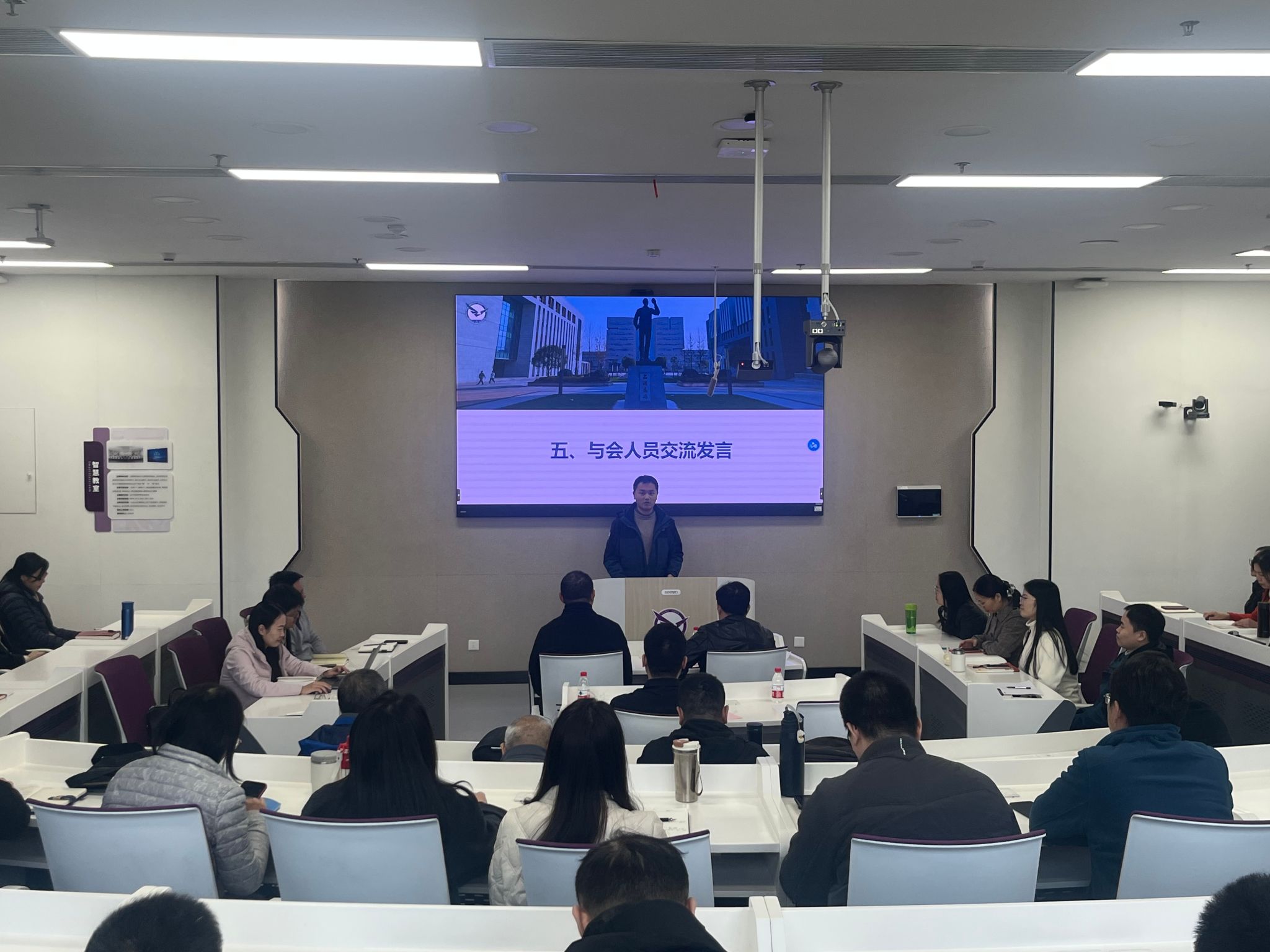 与会班主任和辅导员们展开交流。2024级辅导员张弛老师结合当前学校学业预警机制变化和实际工作感受分享了后续学风建设工作的重点方向。