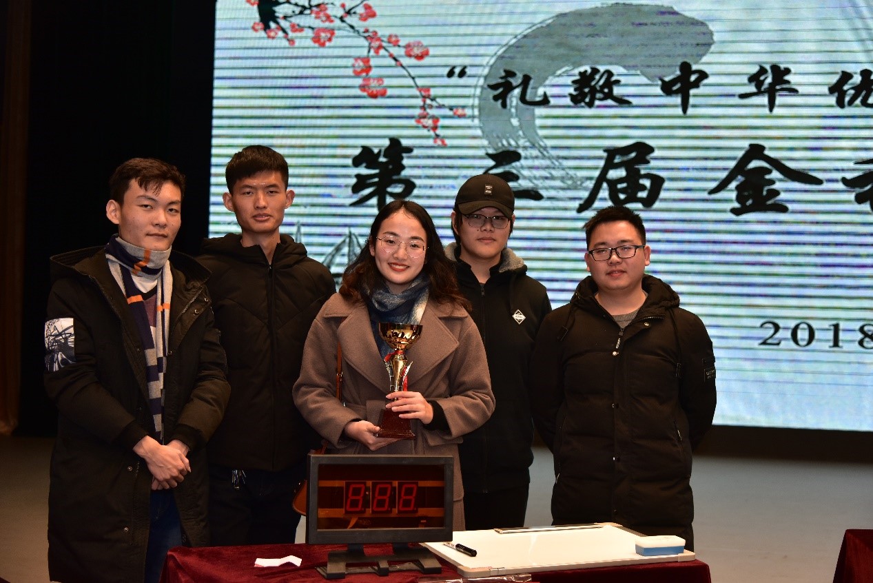 本次金秋诗词大会的主题为“诵读经典诗词,续写时代华章”,意在弘扬中华民族优秀传统文化,在校内营造“学习、诵读、感悟”经典诗词的礼敬中华传统文化的氛围。经过学生踊跃报名,按照学校要求,Beat365官网共推选三位研究生、一位本科生参加比赛。团队组建后,四位团队成员积极备赛,12月初,顺利通过了笔试预赛,成为八支晋级决赛的团队之一。