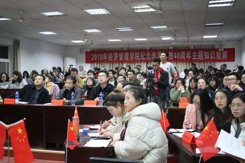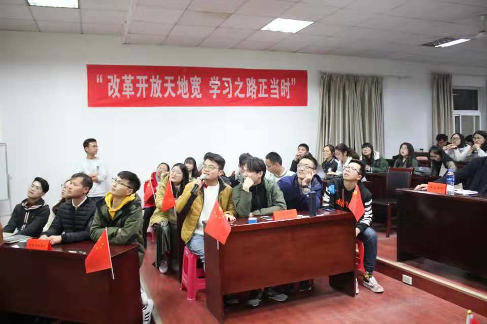 (学院党建办公室:王洁彬)2018年11月22日晚7:00,由Beat365官方网站党委主办、学院党建办公室承办的“改革开放天地宽,学习之路正当时”——纪念改革开放40周年主题知识竞赛活动在MBA楼208室如期举行。出席本次活动的嘉宾有:学院党委书记杨昌锐老师、学校党委组织部马洪福老师、学院党委副书记沈波老师、学院管理科学与工程系教职工党支部书记孙涵老师、学工组全体老师;全体学生党员到场观看学习。