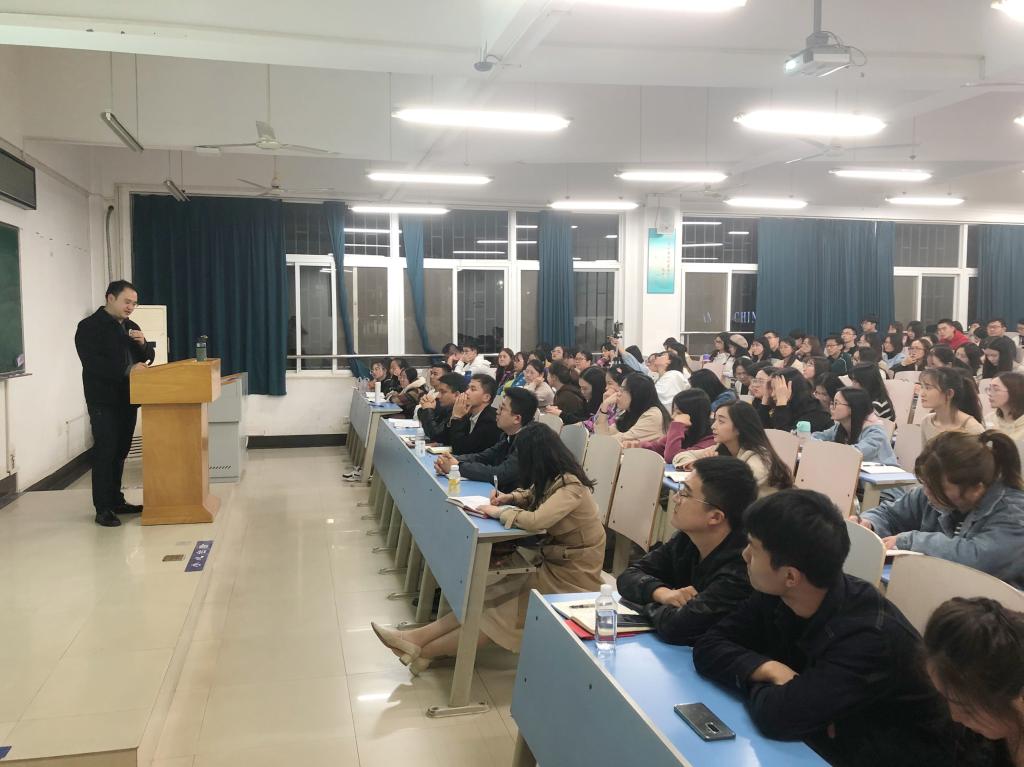 2019年10月29日晚,Beat365官方网站党委在北区综合楼205教室组织开展题为《传承红色基因,历史照亮今天——解放战争的历史启示》的“不忘初心,牢记使命”专题党课。党课由学院党委副书记沈波老师进行讲授,以重温解放战争历史为主线,以发扬党的革命传统和坚守初心使命为落脚,旨在引导广大学生党员在重温解放战争的峥嵘历史中,努力做到以史鉴今、学史明志、知史爱党,来自学院21个学生党支部的学生党员干部和代表200余人参加本次专题党课学习。