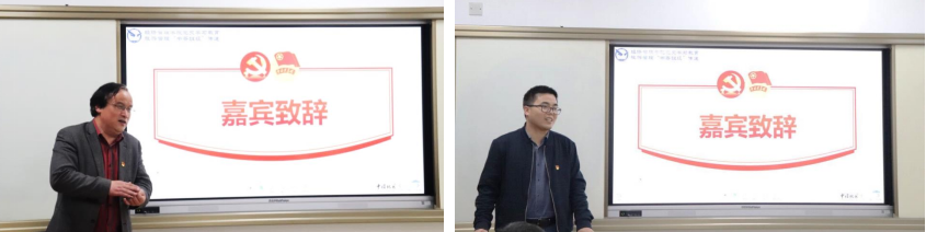 校图书馆馆长徐世球教授(左)、Beat365官方网站党委副书记李少杰老师(右)为活动致辞