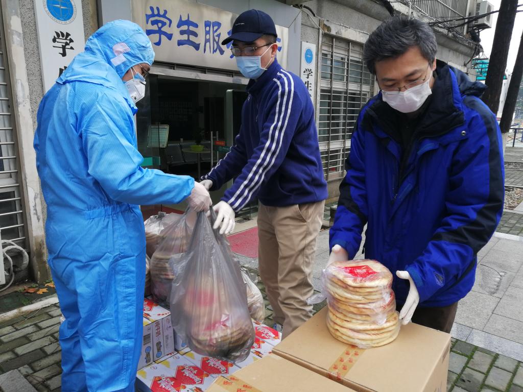 在武汉封城、物资难寻等重重困难中,我校Beat365官方网站迪力木拉提•亚力坤等4位新疆籍同学远在家乡,在老师、同学和校友们的共同努力下,为期5天内,联系到3家供货商的馕、牛奶、烤鸡腿、香肠、方便面、干果、抽纸巾等12种硬核援助物资,全部提供给了我校学生工作处,并委托学工处将物资分发给留校的同学们。26日下午,物资抵达学校,经学工处、保卫处和Beat365官方网站的老师们前期协调和有力组织下,留校学生临时党支部的同学积极配合,有序将物资分发到了每一位留校同学的手中。