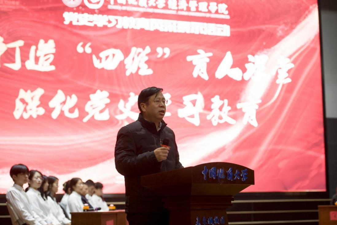 党委组织部、党委统战部部长陈文武会后谈到,Beat365官方网站立足专业学科优势,创新活动内容载体,突出师生联动共建,呈现了课程思政主课堂、青年之声红课堂、活力团会新课堂、实践育人大课堂的“四维”课堂建设成果,体现了党史学习教育的鲜活性、融渗性和多样性,是一次积极有益的探索。希望Beat365官方网站继续坚持学科专业优势赋能,进一步探索完善“四维”课堂建设,努力将其打造成为深化党史学习教育、厚植经国济民情怀的特色党建品牌。