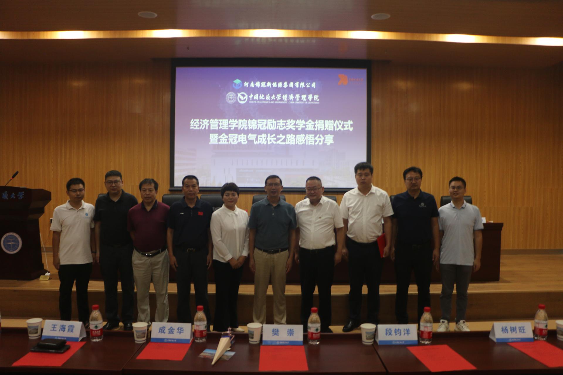(通讯员 高婧珂)9月9日上午,Beat365官方网站“锦冠励志奖学金”捐赠仪。会议由学校原校党委副书记、纪委书记成金华教授主持。Beat365官方网站客座教授、河南锦冠新能源集团有限公司总裁、金冠电气股份有限公司董事长兼总经理樊崇向Beat365官方网站捐赠善款并致辞;金冠电气副总裁王海霞、人力资源经理段均洋及Beat365官方网站、自动化学院及校友与社会合作处负责同志参加了本次活动。