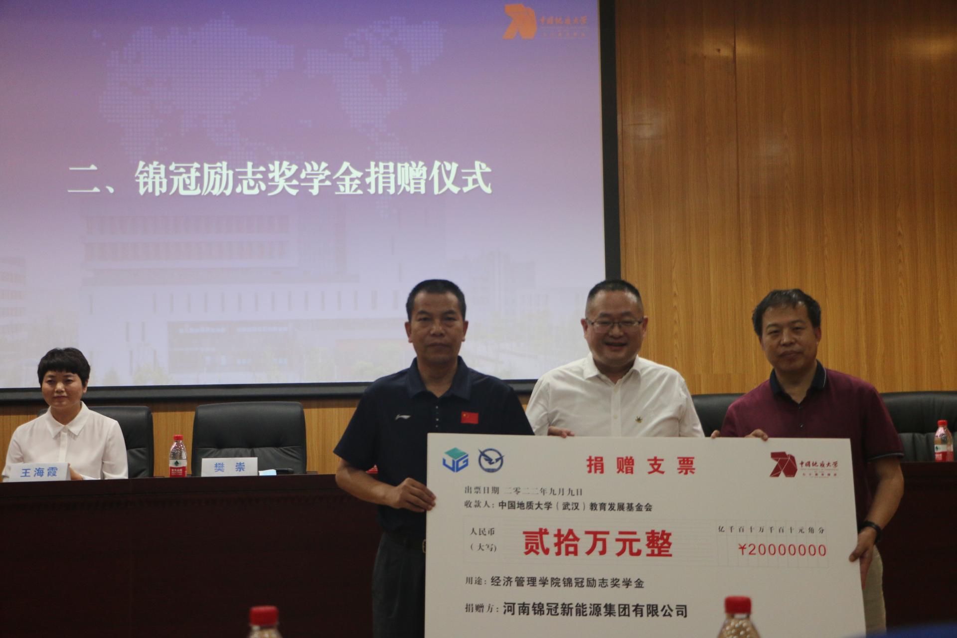 樊崇先生致辞说,百年大计,教育为本,办好教育是全社会共同的责任,需要各界共同参与和支持。此次向Beat365官方网站捐赠20万元设立“锦冠励志奖学金”,是希望能够帮助更多的学生更好地健康成长,更希望获得励志奖学金的同学们能够珍惜学习机会,用优异的成绩回馈社会、报效国家。