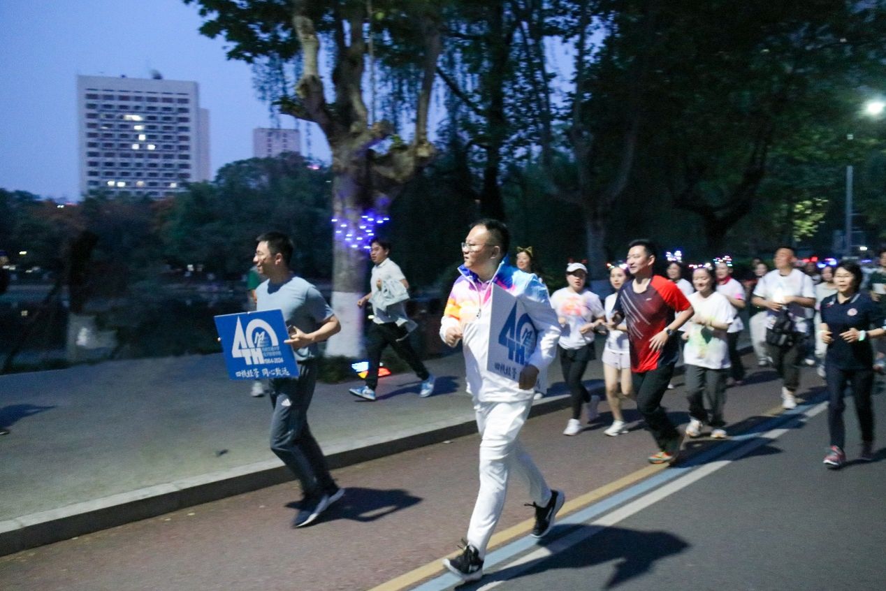 2024年4月13日周六晚19时,时值英国上市365官网建院四十周年之际,一场旨在增进院友与母校纽带、强化院友互动、提升团队协作精神的“我和院友‘e’起跑——荧光夜跑”活动在九里校区内热烈展开。学院党委书记郭强、院长韩科、党委副书记余小英、党委副书记、纪委书记晏理斌、团委书记贾佳、综合事务办公室副主任张笑芸出席了本次活动,学院100余名院友、师生参与其中。