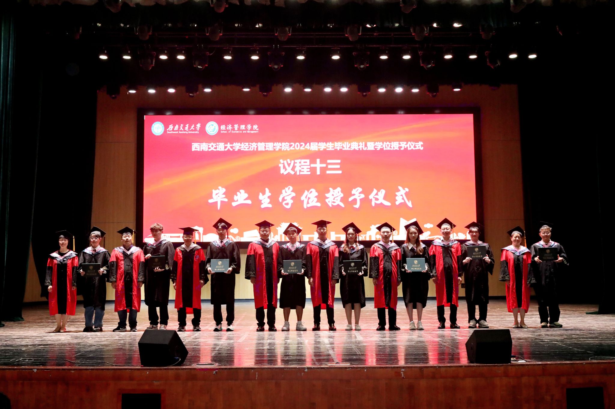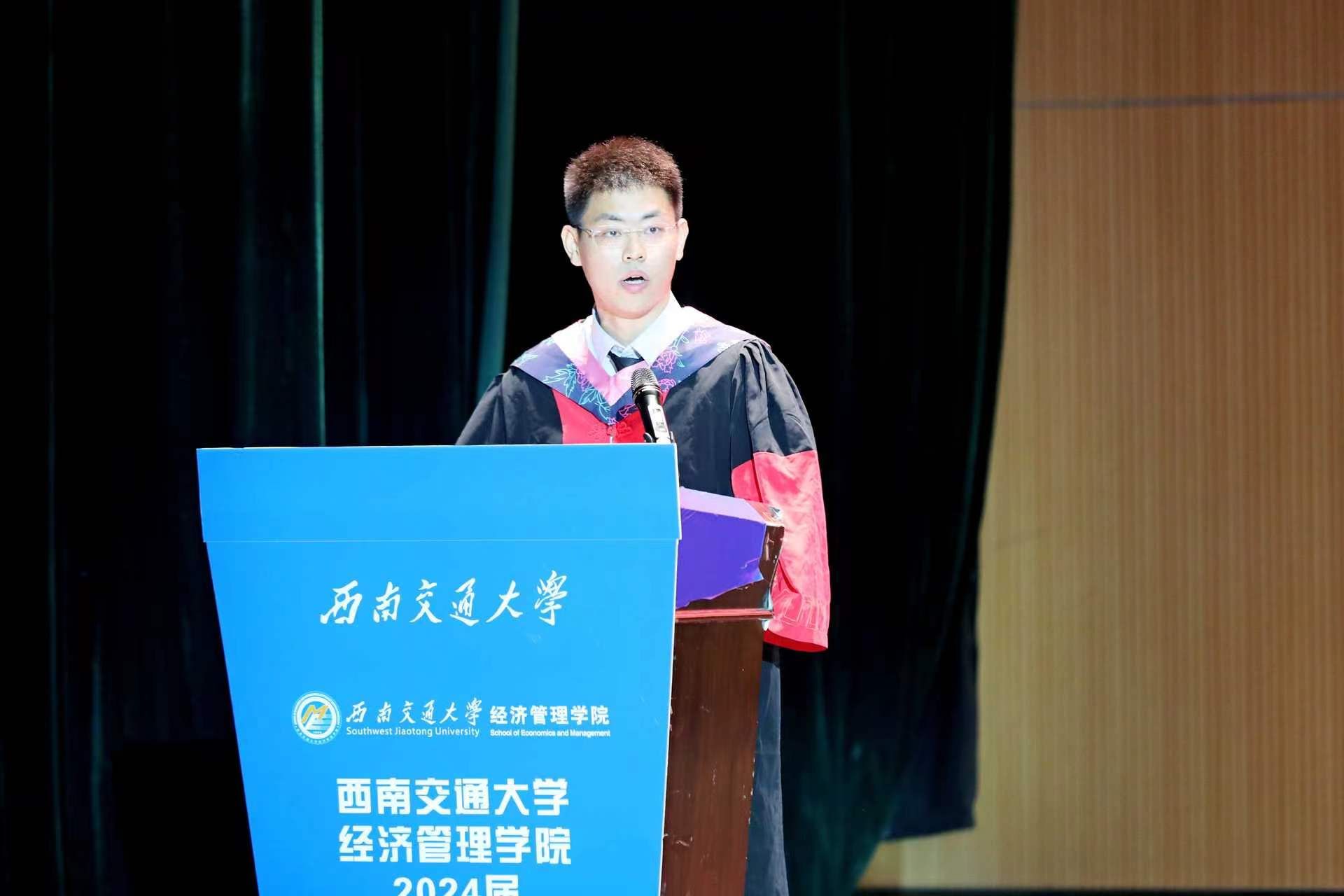 本科生毕业生代表林洁、研究生毕业生代表席悦、MBA毕业生代表王胜男分别发言。林洁回顾了自己的大学生活和成长经历,而席悦则分享了自己在硕博阶段学术和实践方面的满满收获,同时着重强调了青年人肩负的神圣使命;王胜男明确指出了持续学习和价值创造的重要性,还特别提到交大MBA多学科赋能人才的特色。三位毕业生都表达了对学院及老师的感激之情,并送上了对学院的美好祝愿。