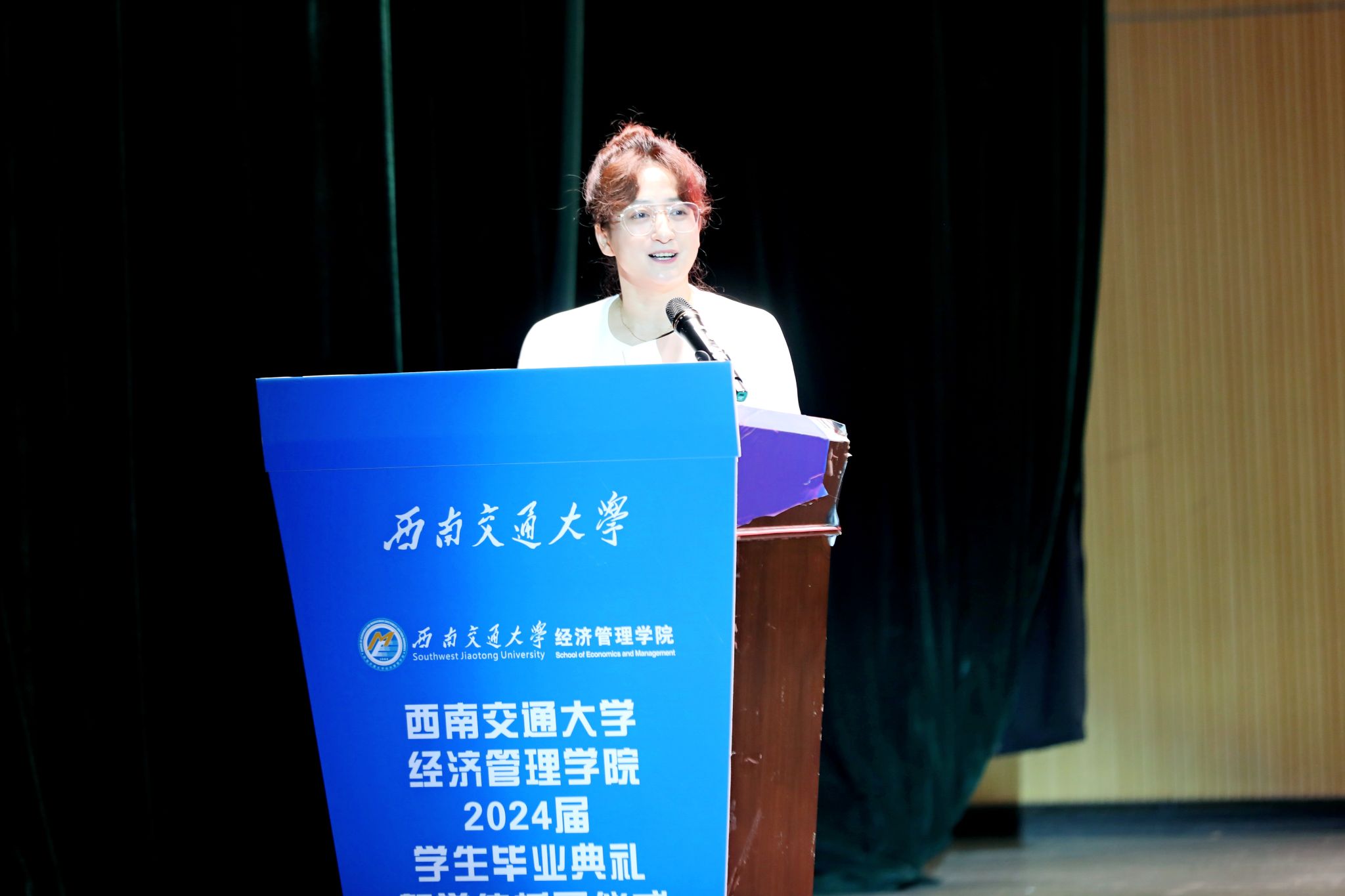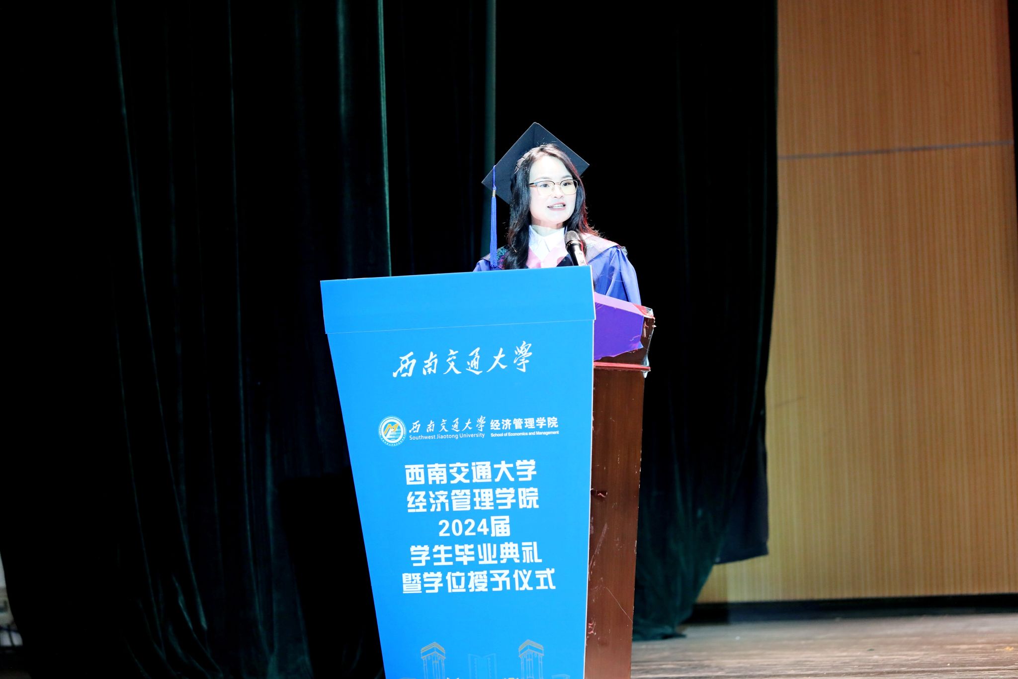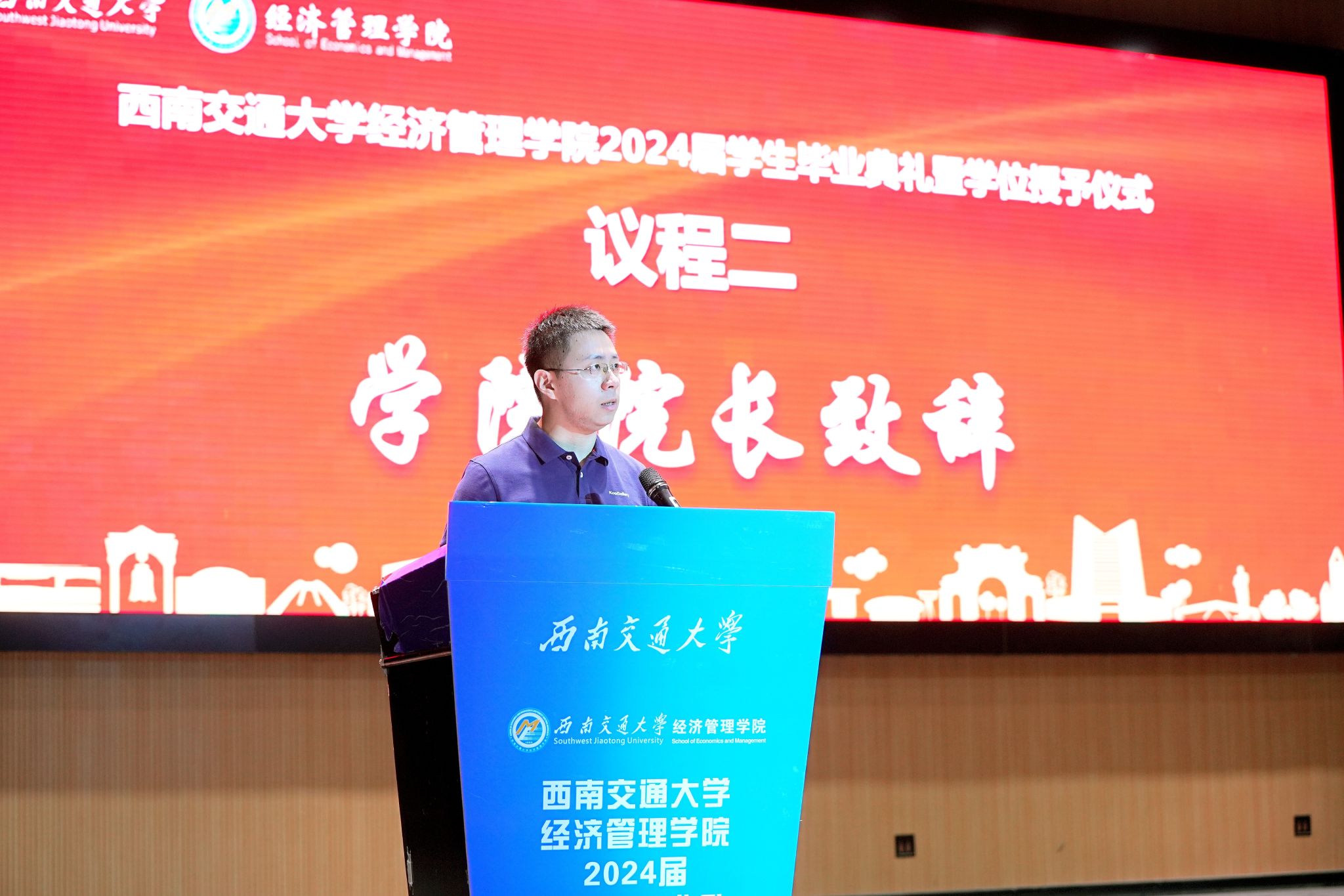 首先,学院院长韩科为典礼致辞。他代表英国上市365官网全体师生,向全院2024届毕业生表示热烈祝贺,并对他们在学院学习期间所取得的成绩给予高度认可。临别之际,他强调,希望同学们时刻谨记校训、院训,发扬交大精神,展现交大学子的担当。同时,韩院长为毕业生们提出了三点建议:一是提升境界的高度,二是拓展胸怀的广度,三是加深信念的深度,希望毕业生们带着学院的关心关怀,无惧风雨,奋勇前进,学院永远是经管学子们温馨的家。字字句句间,都寄托着对全体毕业生的深情嘱托与美好祝愿。