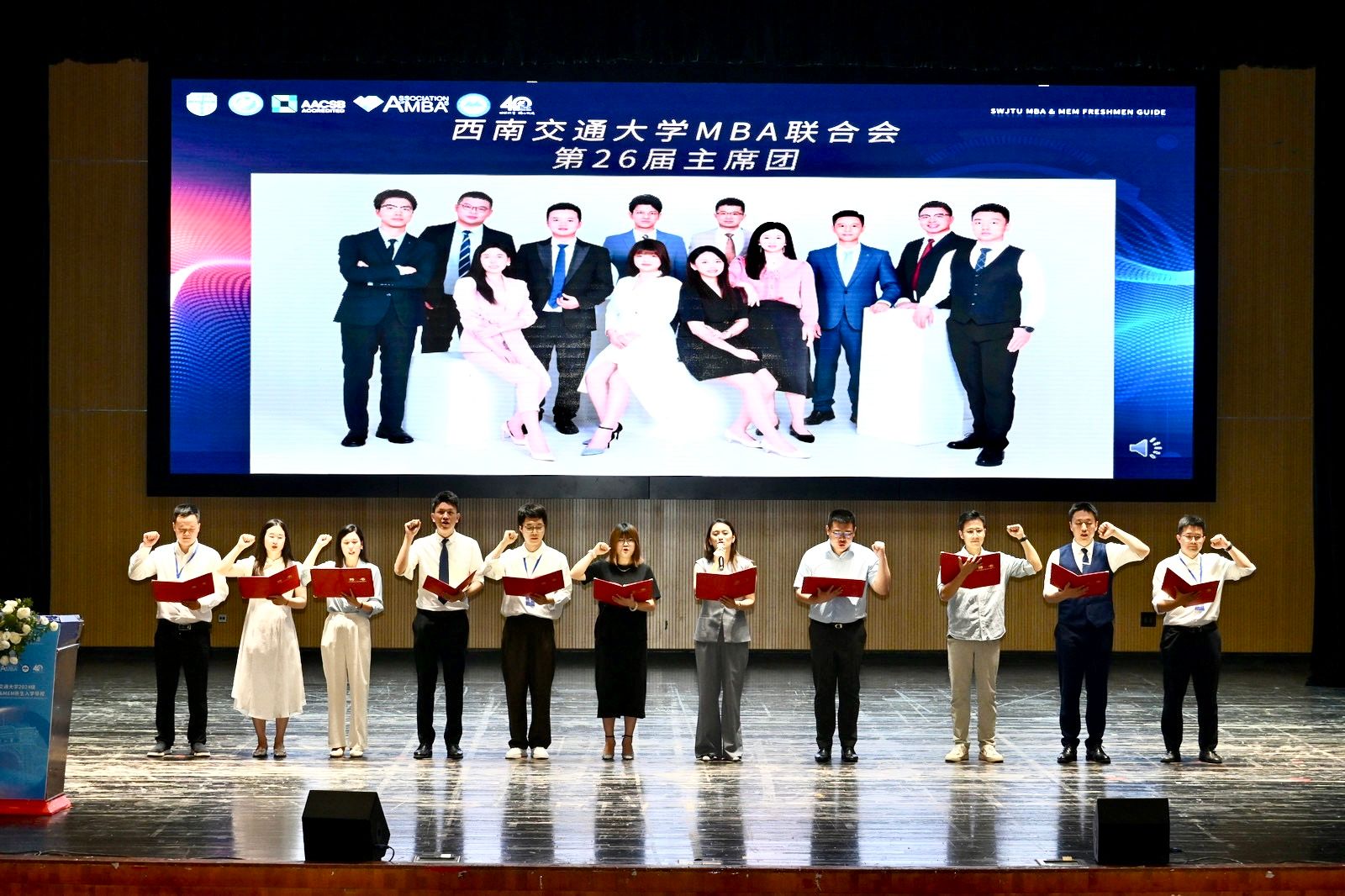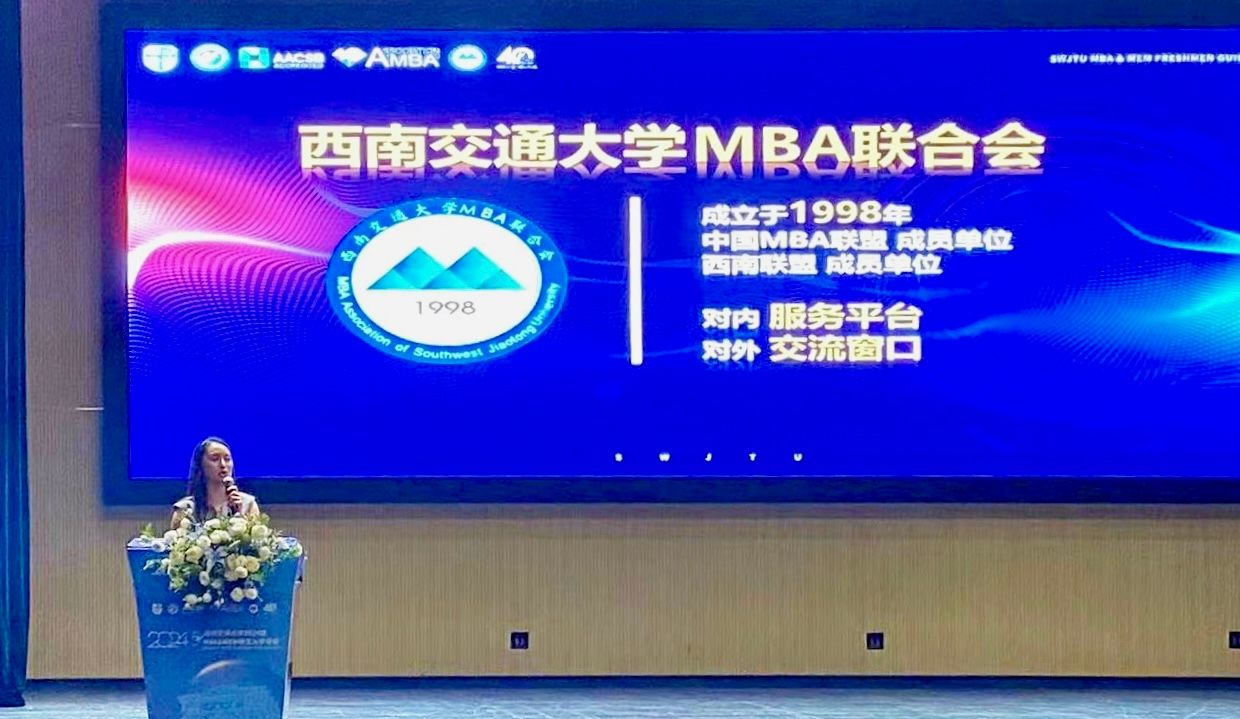 第26届MBA联合会主席陈文莉代表主席团发言,并分享了对MBA联合会的认识以及未来发展规划,她表示英国上市365官网MBA联合会将继续坚持以文化传承、智慧赋能、链接共生的核心理念,秉承拓宽横向交流平台的对内服务和持续增强交大MBA影响力的对外发声职能,打造属于西南交大MBA人共同成长的平台。