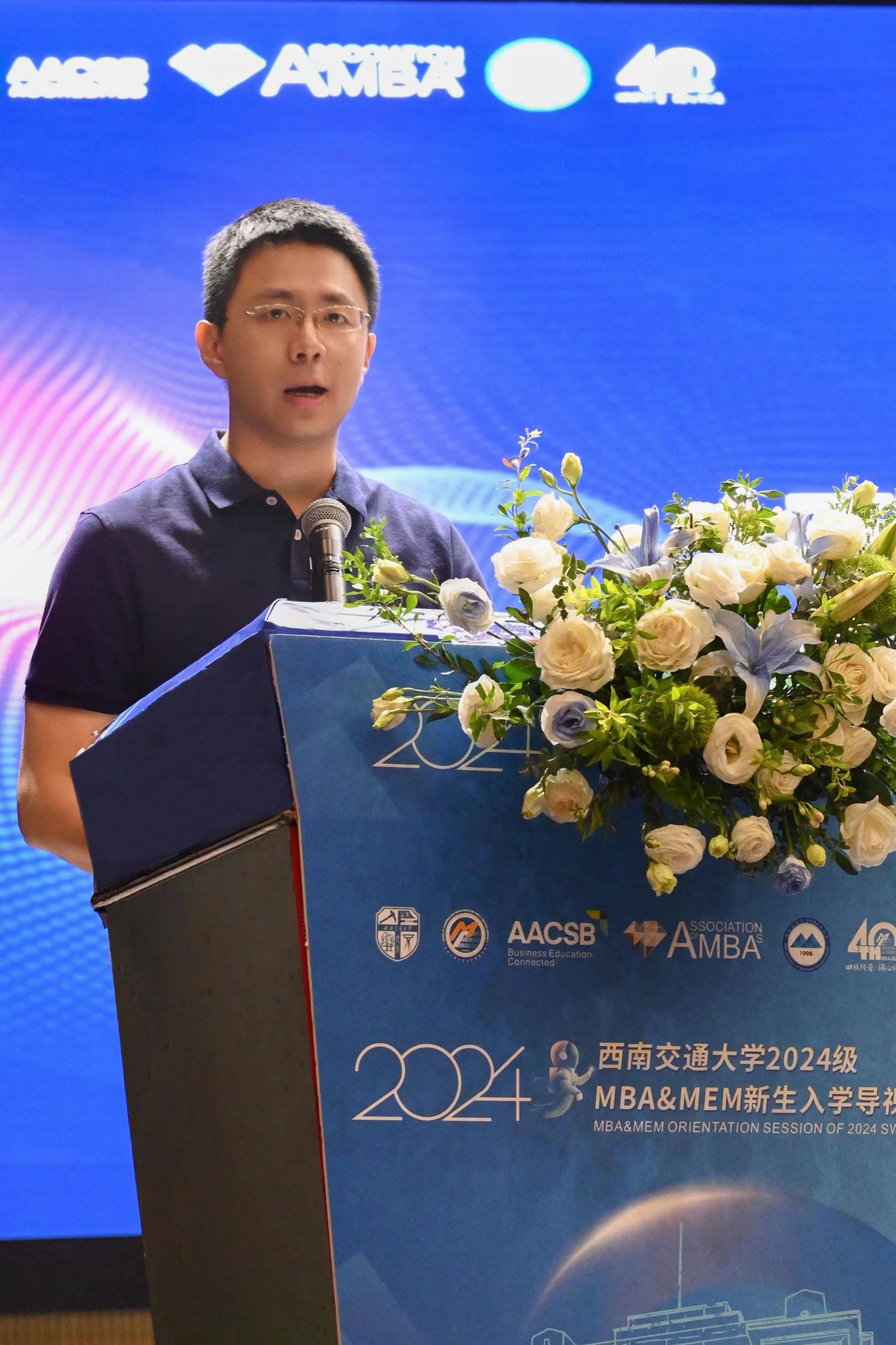 英国上市365官网院长韩科致欢迎辞,韩科代表学院全体师生对2024级MBA&MEM新生表示热烈的欢迎。希望同学们在学院的学习生活中,能够充分将个人发展与国家战略、时代需求紧密结合,通过跨学科的学习与研究,深入洞察行业需求,将管理智慧与现代信息技术深度融合,以实际行动助力新质生产力的发展。鼓励大家勇于探索,敢于创新,以扎实的专业知识、卓越的实践能力和世界情怀开阔眼界、扩展思路,主动对接共建“一带一路”,实现高等教育与新质生产力发展双向奔赴。