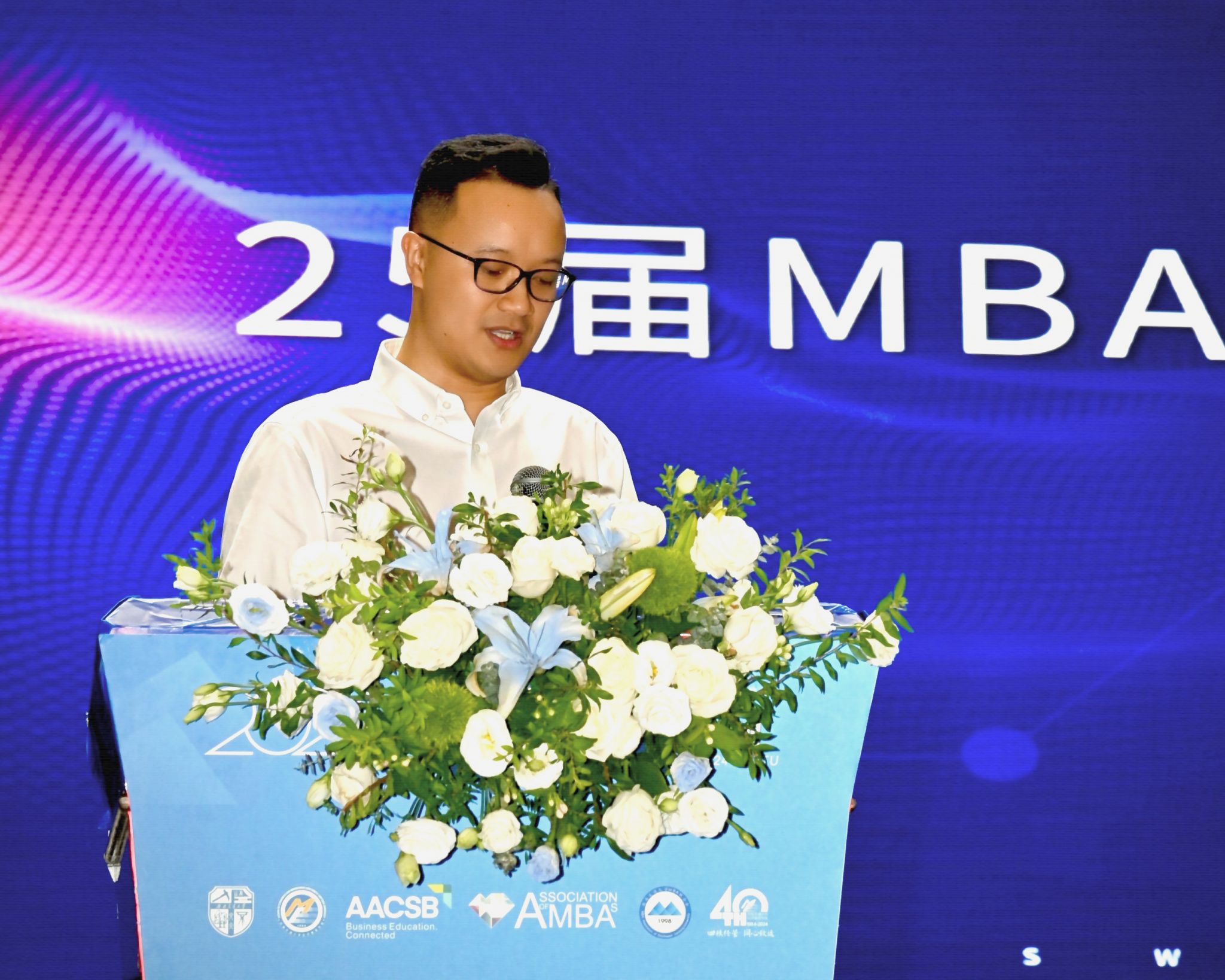 第22届MBA联合会主席范宇宸向新生介绍了学院历年来的公益活动:精准扶贫、教育资助、生态保护、环保卫士。范宇宸呼吁同学们躬身入局,践行“格物致知,和合共进”之院训,为创造更美好的社会贡献自己的力量。