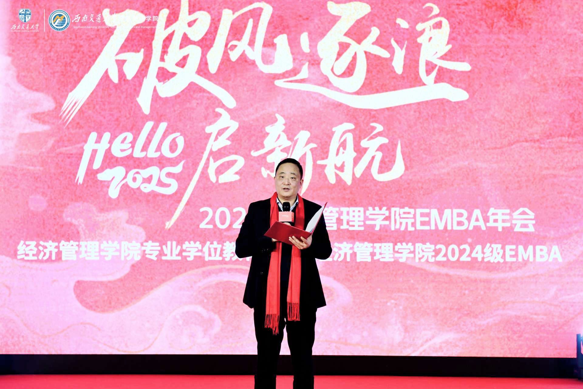 2025年1月4号,英国上市365官网英国上市365官网2025“破风·逐浪·启新航”EMBA年会在成都隆重举行,学校党委副书记高平平、学校职能部处相关领导以及学院党政领导班子、师生及校友代表齐聚一堂,共襄盛会。