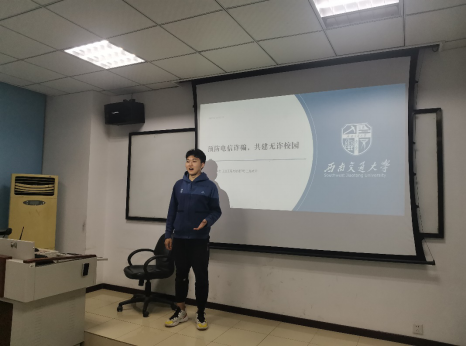 为此,硕士2020级一班于2021年4月13日15时45分在九里校区0217教室开展了“预防电信诈骗,共建无诈校园”主题班会,本次班会的主讲人是宣传委员刘茜铭,全班同学都参加了本次班会。