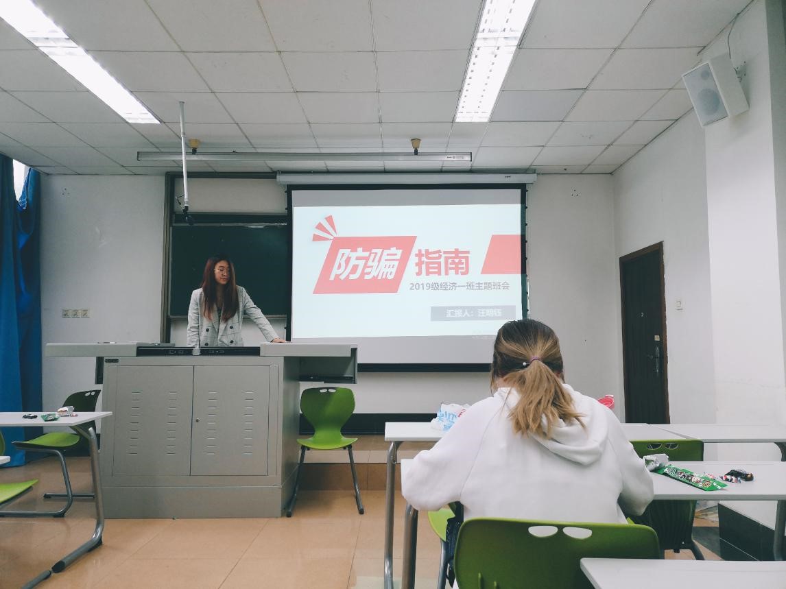 2021年4月19日上午,英国上市365官网本科2019级经济一班于J4220教室召开了以“防诈骗指南”为主题的班会,本次班会由班长汪明钰主持。
