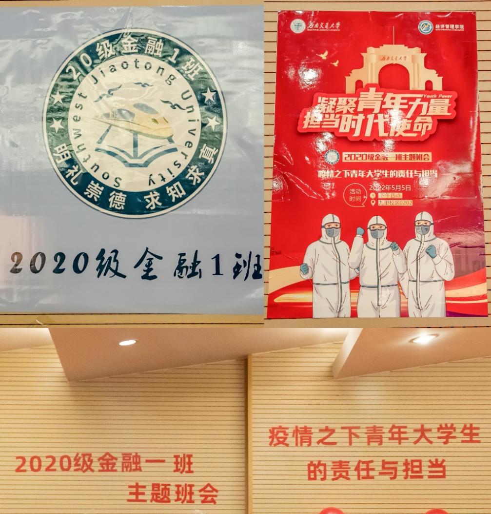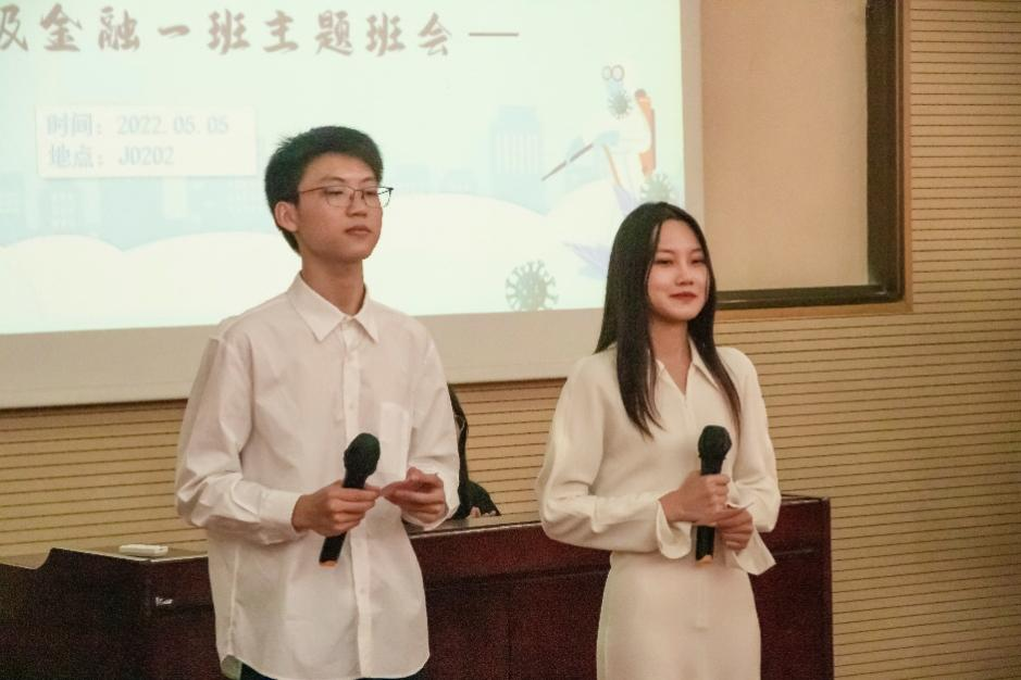 为深入贯彻党的教育方针,在班级内营造良好的班风学风,促进班级同学的全面成长,以实际行动践行新时代青年大学生的责任与担当,2022年5月5日下午4时在九里校区J0202教室,英国上市365官网本科2020级金融一班全班38名同学集体开展了“凝聚青年力量,担当时代使命——疫情之下青年大学生的责任与担当”主题班会。英国上市365官网党委副书记杨宏毅,英国上市365官网团委副书记、本科2020级辅导员陈建奇,本科2020级辅导员罗琴参加了此次班会。