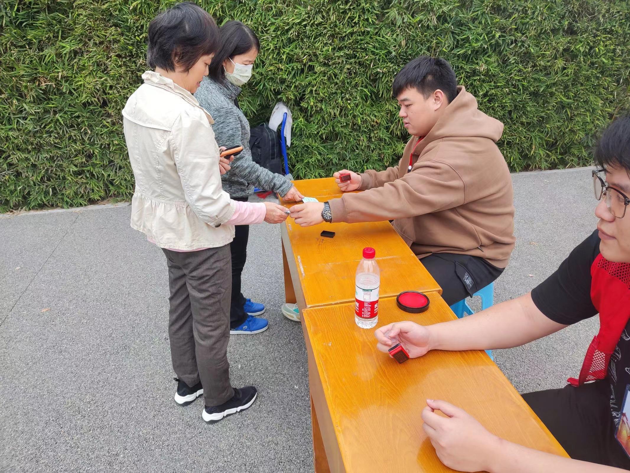 不知不觉便来到了行政楼的盖章点。在这里,志愿者们负责给老教师们手中的活动券盖章。行走一路,畅谈一行,老教师们沉浸在活动的喜悦里;一章一印,一言一行,志愿者们保障着活动的顺利进行。印章盖在了活动券上,不仅作为此次活动的纪念,也将作为两个时代交融的见证。