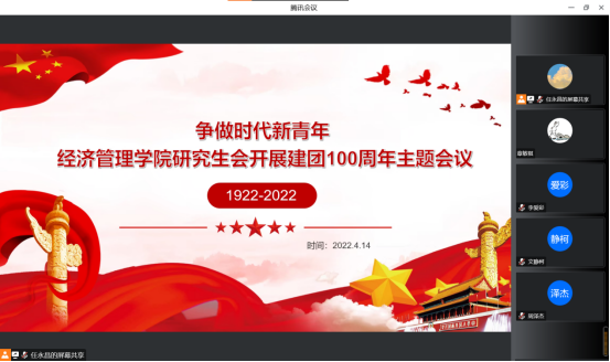2022年是中国共产主义青年团建团100周年,为致敬峥嵘岁月,献礼建团百年,365官网研究生会于2022年4月14日在线上开展“建团100周年”主题会议,大家共同学团史、知团情,一起回顾中国共青团百年光辉岁月,探讨学习重要精神。