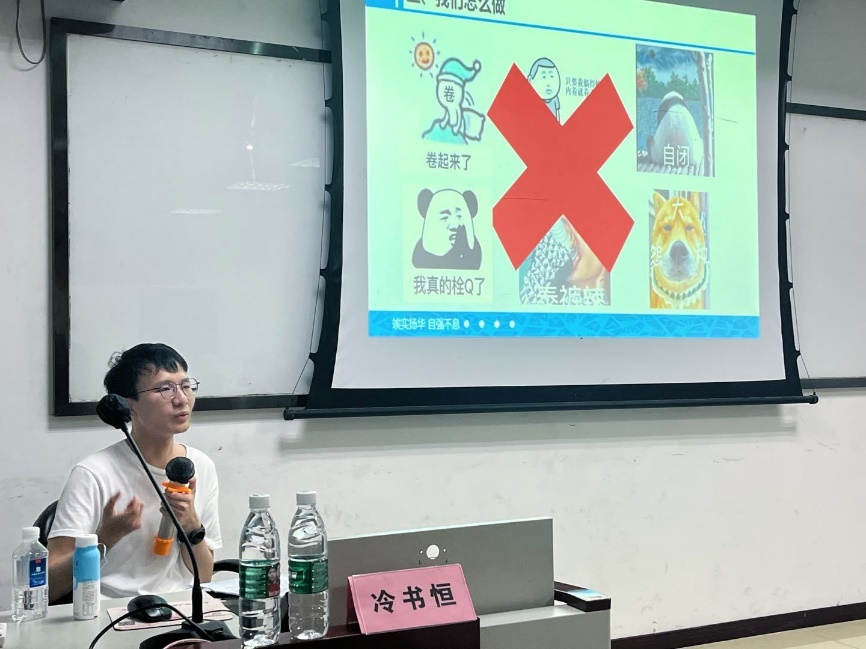 培训进入尾声,冷书恒提出问题:“我们新时代青年在现代化建设进程应当怎样贡献自身力量?”冷书恒结合相关视频,形象具体地为我们分享了一些他的自身感悟:作为当代青年,同学们应努力奋斗,勇担时代责任;应牢记历史,展望未来;应不忘初心,坚定理想信念;应勇毅前行,为中华民族伟大复兴添砖加瓦。