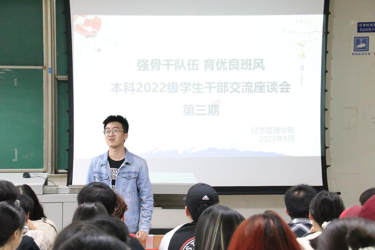 为弘扬“万众一心、众志成城,不畏艰险、百折不挠,以人为本、尊重科学”的伟大抗震救灾精神,全方位培育先进班集体,加强班级凝聚力,5月11日下午,英国上市365官网本科2022级“强骨干队伍 育优良班风”学生干部交流座谈会第三期在九里校区J4223举行,本科2022级辅导员及全体班委参加,本期座谈会由辅导员王子琦主持。
