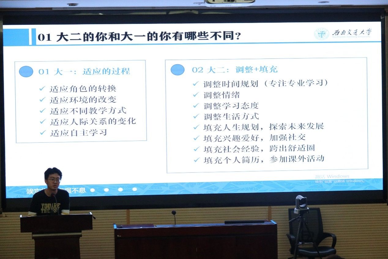 接着,王子琦提到,大一学年对同学们是一个适应的过程,而大二的关键词应是“调整”和“填充”。他以简历制作为切入口,倡导同学们结合自身制定职业生涯规划。并以“139”的小游戏让同学们在纸上写下1句目标、3个愿望、9条措施,从而引发同学们思考在披荆斩棘的一年“该如何规划大二生活”和“大二和大一有哪些不同”等问题。