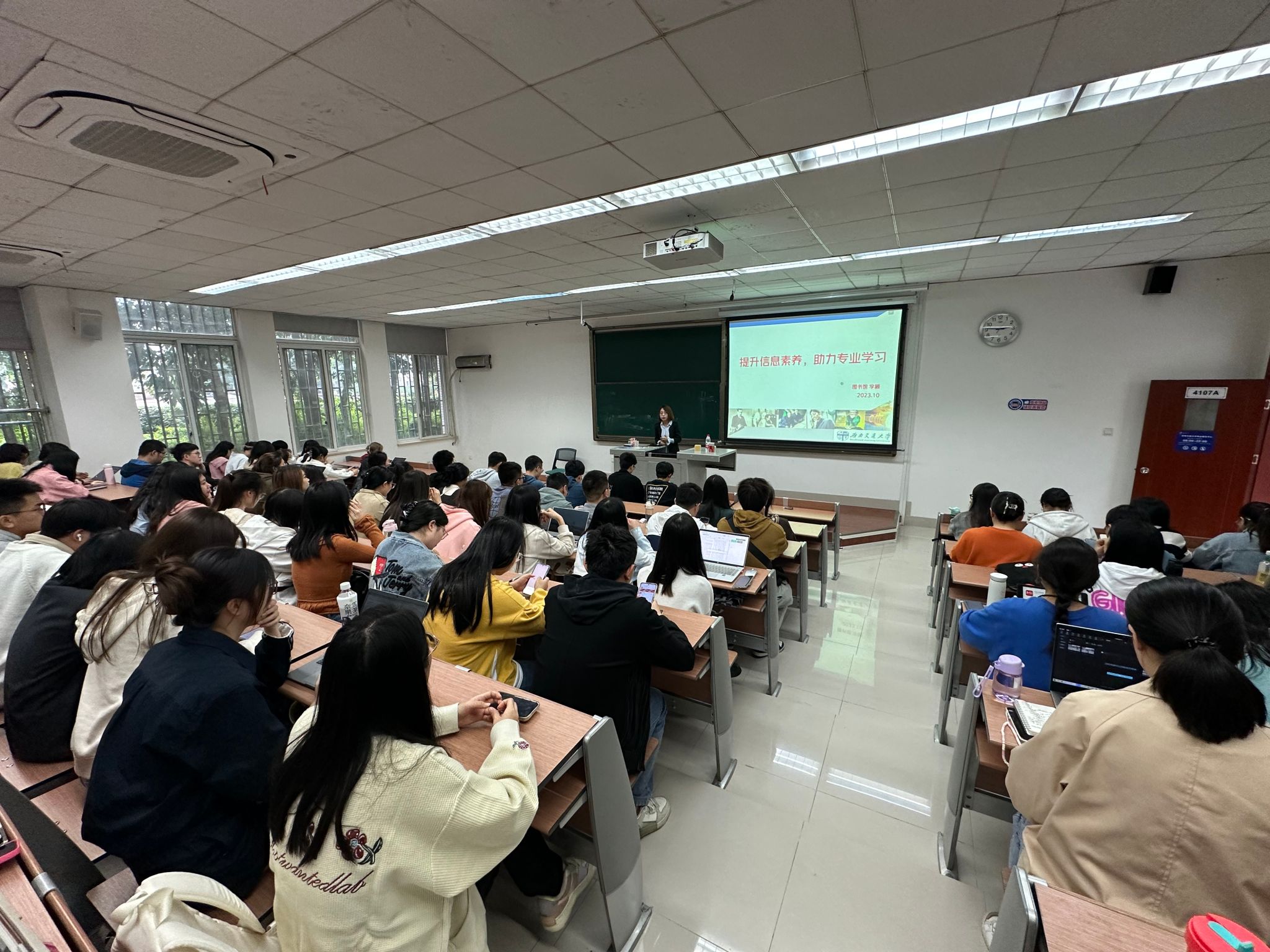 2023年10月26日,英国上市365官网邀请英国上市365官网图书馆李颖老师,为2023级研究生新生开展了一场图书馆数据库应用培训讲座。参加本次培训的还有研究生辅导员贺小轩和李勇老师。