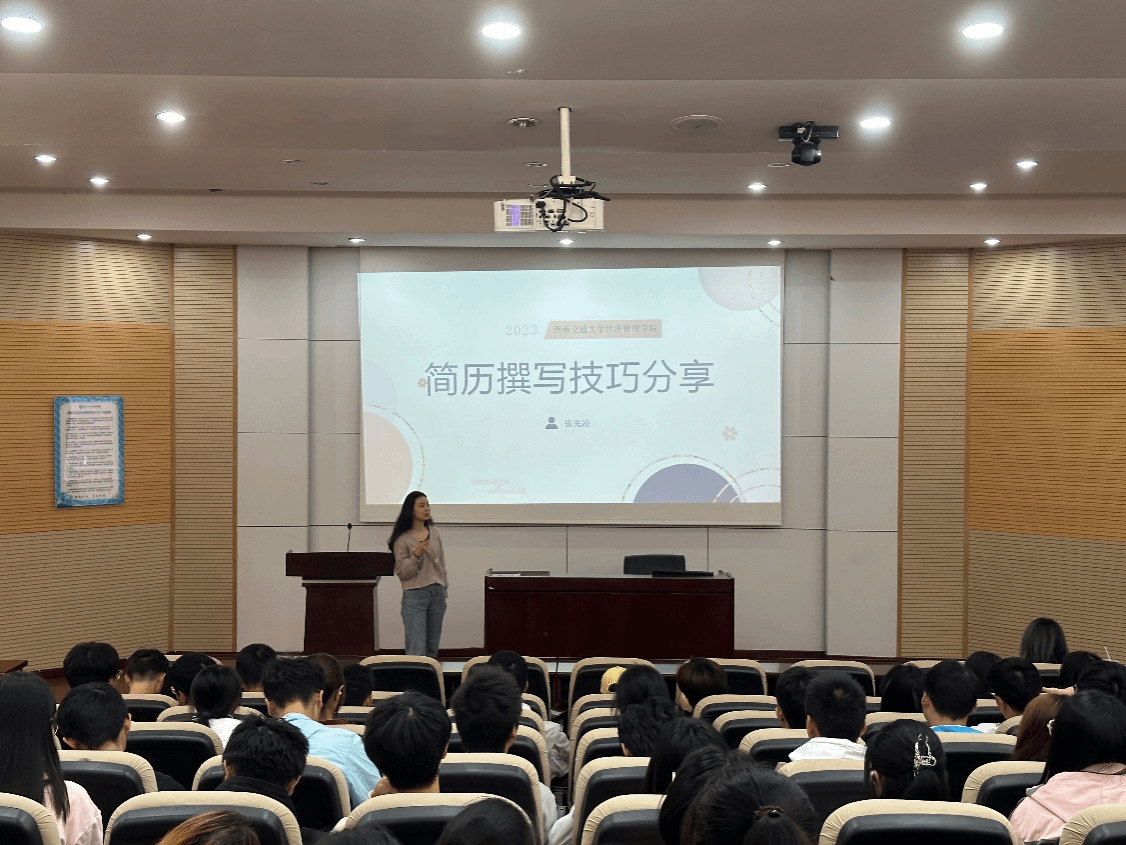 为进一步助力同学们学业和职业生涯规划,指导同学们如何结合自己的规划与实践,制作自己的第一份简历和更好地进行面试,英国上市365官网本科2023级分别于10月27日下午和11月2日晚上在九里校区J0215和J4310教室开展了简历撰写技巧分享和企业面试与技能培训讲座。本次讲座由学校中级生涯导师张先凌老师,本科2023级辅导员王哿老师、苏扬老师主讲,本科2023级全体同学参加。