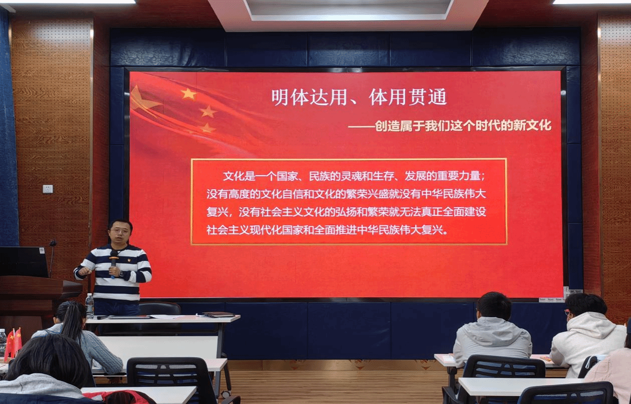 廖凡老师首先介绍了文化自信,深入讲解了四个自信的具体内涵,梳理了从三个自信到四个自信的变化过程、四个自信的关系和文化自信的重要意义。之后,又带领同学们对习近平文化思想进行了学习。