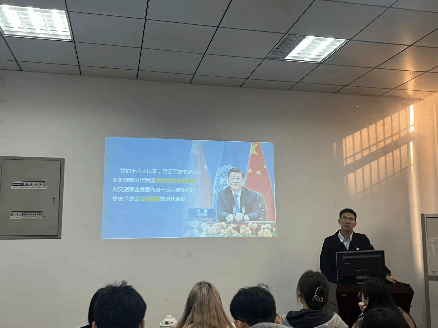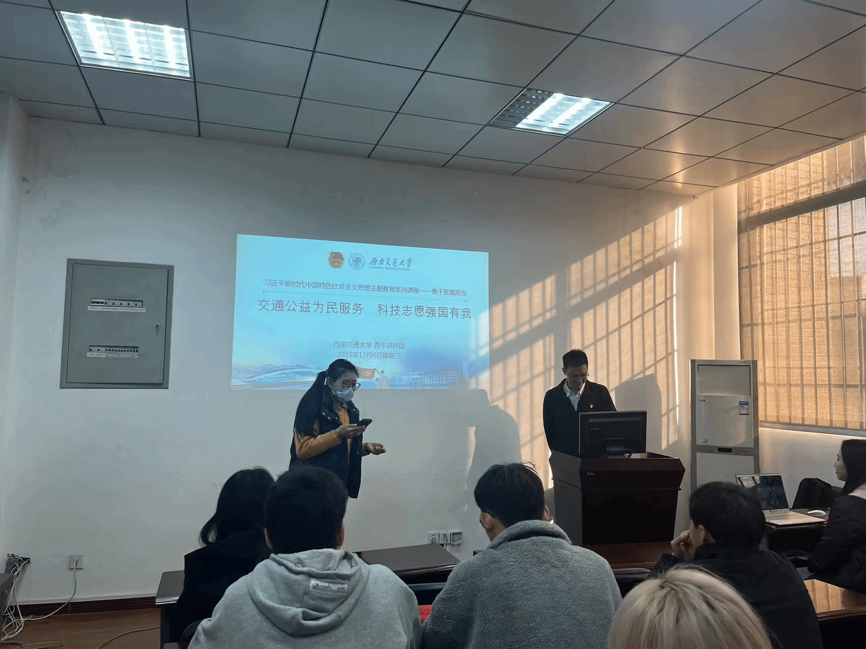 为进一步推进新时代青年建设、加强学生对时代责任的认识,12月6日16时,英国上市365官网邀请英国上市365官网青年讲师团成员,环境科学与工程学院团委书记杨都强同志为硕士2023级2班在九里校区信息楼J0217进行了以“交通公益为民服务,科技志愿强国有我”为主题的宣讲。此外,参与本次活动的还有英国上市365官网团委书记贾佳老师。