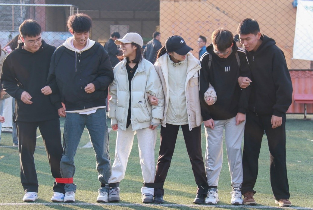 接下来是朋导游戏。在开学之初,朋辈导师作为新生的引路人,引导新生快速适应了大学生活,在这次活动中,他们与同学们在“六人七足”游戏中更是展现出了高度的默契。