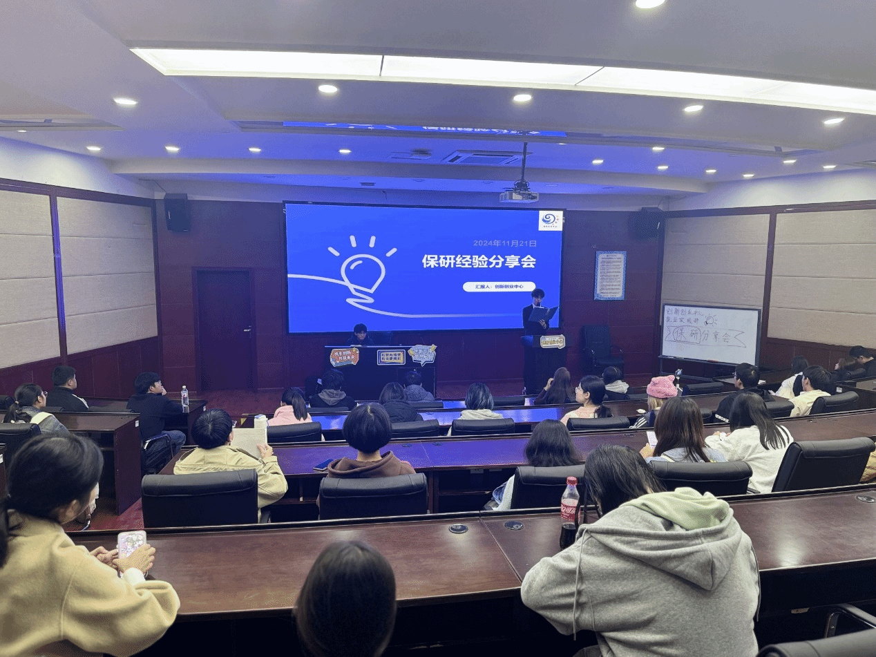 在学风建设活动方面,本科各年级紧密围绕同学们的实际需求,策划并组织开展了涵盖生涯规划、创新创业、专业分流、科研竞赛、考研保研等方面丰富多彩的主题活动,旨在全面提升学生的学术能力与综合素质。2021级组织每日考研打卡激励同学们坚持学习,同时通过考研慰问活动为考研学子送去温暖和鼓励,增强同学们的考研信心和动力。2022级邀请竢实扬华奖章获得者、推免至复旦大学的杜齐阳开展保研经验分享会,对两种升学方式以及部分学校的保研要求、推免比例、加分政策等进行详细的介绍,在备考策略、面试技巧和心态调整等方面进行了经验性的指导。2023级、2024级各班邀请优秀学长学姐以及专业教师分享宝贵经验与心得,开展线上线下英语打卡、每日学习内容总结等活动。这些活动不仅激发了同学们的学习热情,也促进了他们更加主动地投入到学习中去,营造了一个积极向上的学习氛围。