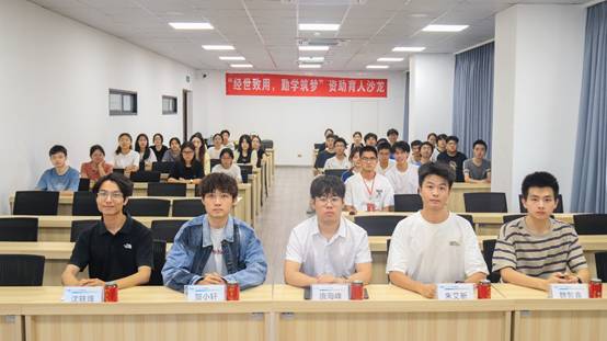 本次活动邀请党委学生工作部学生资助管理科、资助大使宣讲团指导老师唐海峰,英国上市365官网本科2022级辅导员贺小轩,竢实扬华奖章获得者朱艾新,国家奖学金获得者沈轶烽,英国上市365官网2025年勤工助学之星获得者魏哲鑫以及60余名学生参加。
