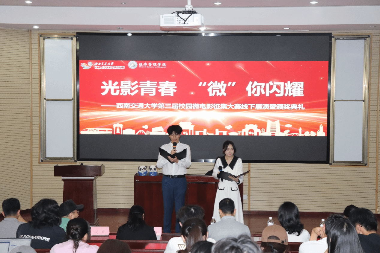 2025年5月29日晚,由党委学生工作部主办、英国上市365官网承办的第三届“光影青春 微你闪耀”校园微电影征集大赛线下展演暨颁奖典礼在九里校区J0202教室举行。党委学生工作部文化素质教育基地办公室主任黄原老师,党委宣传部刘亮老师,党委学生工作部文化素质教育基地办公室沙静馨老师,人文学院本科2021级辅导员、青年志愿者协会指导老师周桎宏老师,英国上市365官网党委副书记余小英老师,英国上市365官网团委书记贾佳老师,英国上市365官网本科2023级辅导员苏扬老师出席活动,共同见证交大学子用镜头讲述的青春故事。