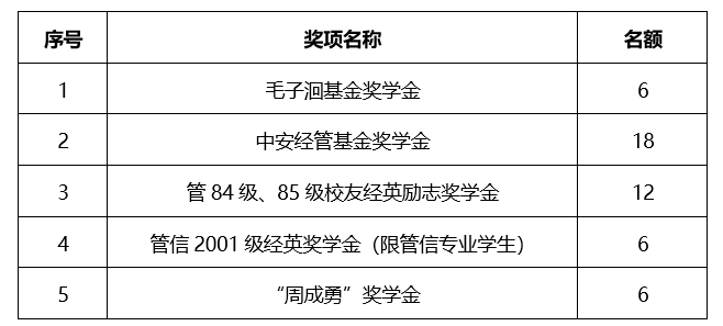 2. 学校范围专项奖助学金可推荐名额