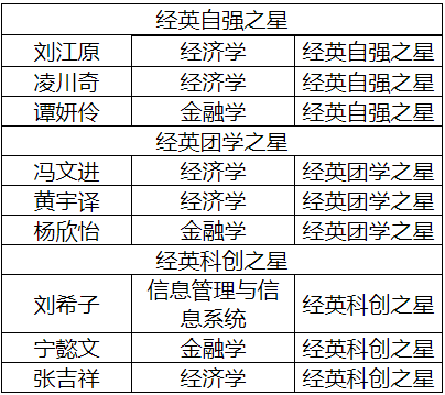 根据《英国上市365官网本科毕业生专项表彰评定暂行办法》及学院相关工作安排,经过学生本人申请、学生工作组审核、学院评审小组现场评审,本次评选称号包括经英自强之星、经英科创之星、经英团学之星,根据评选工作相关规定,现将英国上市365官网2023届本科毕业生专项表彰获得者进行公示。公示名单如下:
