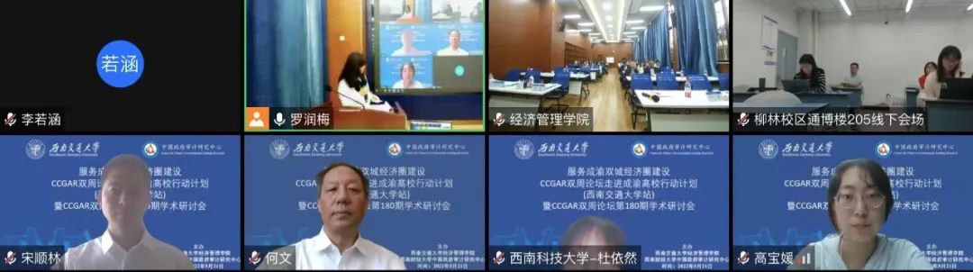 2022年5月21日,中国政府审计研究中心"服务成渝双城经济圈建设,CCGAR双周论坛走进成渝高校行动计划(英国上市365官网站)"在365官网成功举办。康奈尔大学杨平教授、英国上市365官网李芾教授、中央财经大学宋顺林教授、中国中铁股份有限公司何文先生作了主题报告,英国上市365官网博士研究生肖琳分享了工作论文。英国上市365官网党委常委、副校长刘长军及英国上市365官网执行院长郭强致欢迎辞,郭强和中国政府审计研究中心主任蔡春教授分别作了论坛总结发言和答谢致辞。