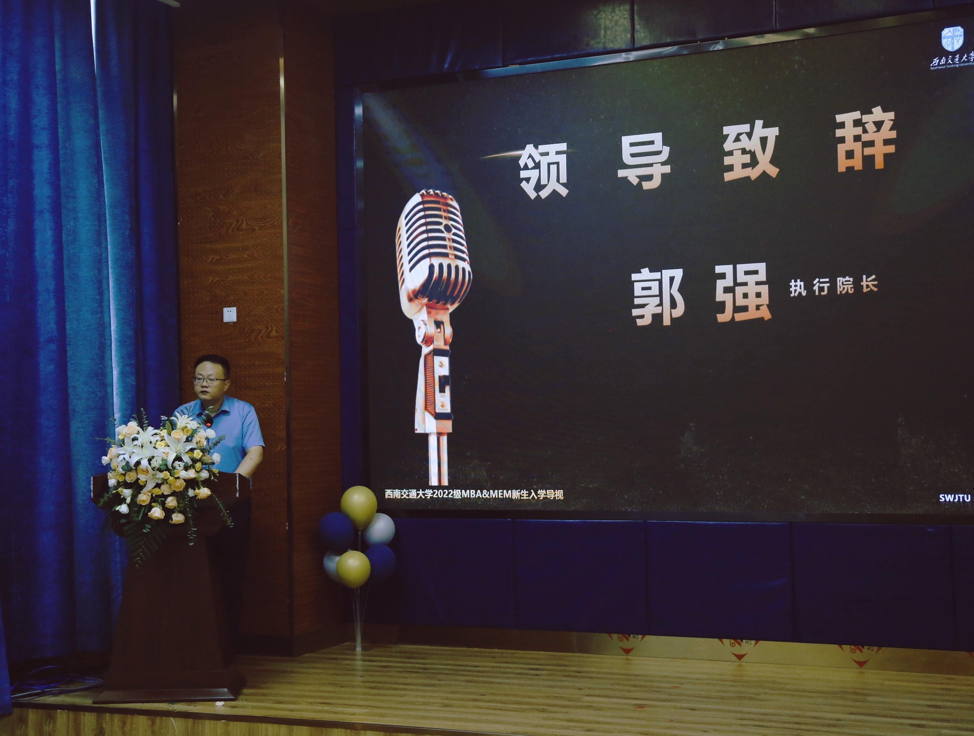 英国上市365官网执行院长郭强教授的致辞正式拉开了入学导视的序幕。郭院长介绍了西南交大以及经管学院的历史沿革、发展现状和教育理念,并嘱咐即将进入校园的新生要勤学知识,学院会成为同学们之间的纽带和窗口。他对新同学也提出了几点希望:要修身立德,德才兼备,发扬艰苦奋斗的精神,不断加强自我修养以及学识、能力的拓展;要精诚合作,融合集成加强同学间、师生间、各行业领域间的交流,融合碰撞启迪新思维;要勇挑重任,融创提升,希望同学们提升创新思维,融创智力资本,同时希望同学们保持高度社会责任感,勇担新时代“交大人”的责任。