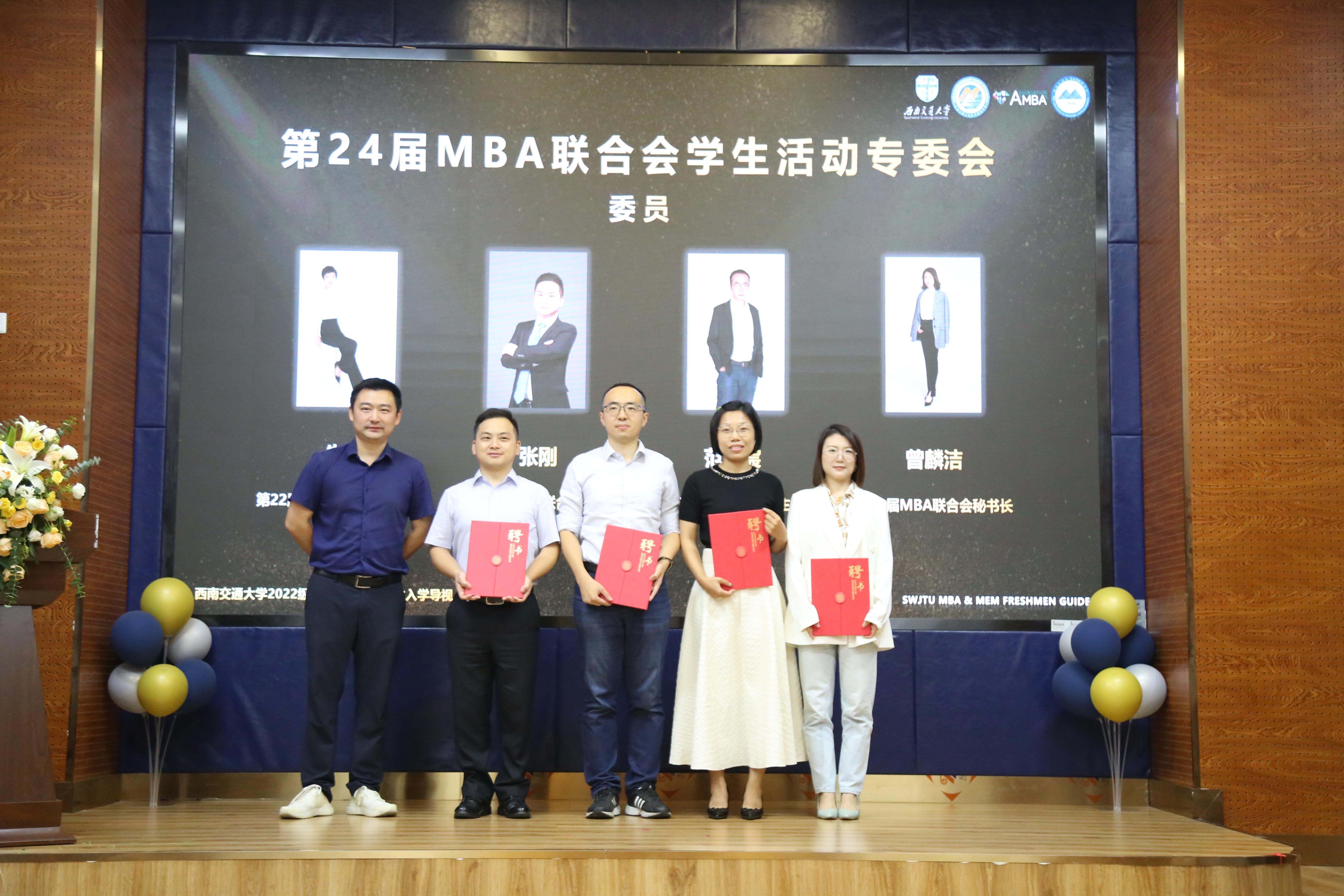 英国上市365官网工会主席、综合事务办公室主任晏理斌为学生活动专委会委员张刚、范宇宸、朱琳、曾麟絜颁发了聘书。作为往届MBA联合会优秀的学长学姐,他们将会为新一届联合会主席团提供更多指导和帮助。