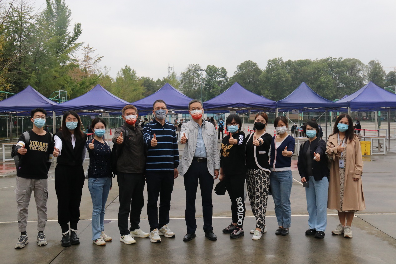 到场参与核酸检测志愿服务工作的老师有王斌、诸波、李一员、王哿、陈丹、何建晖、漆敏、姚霁芸、安静泽和王子琦。