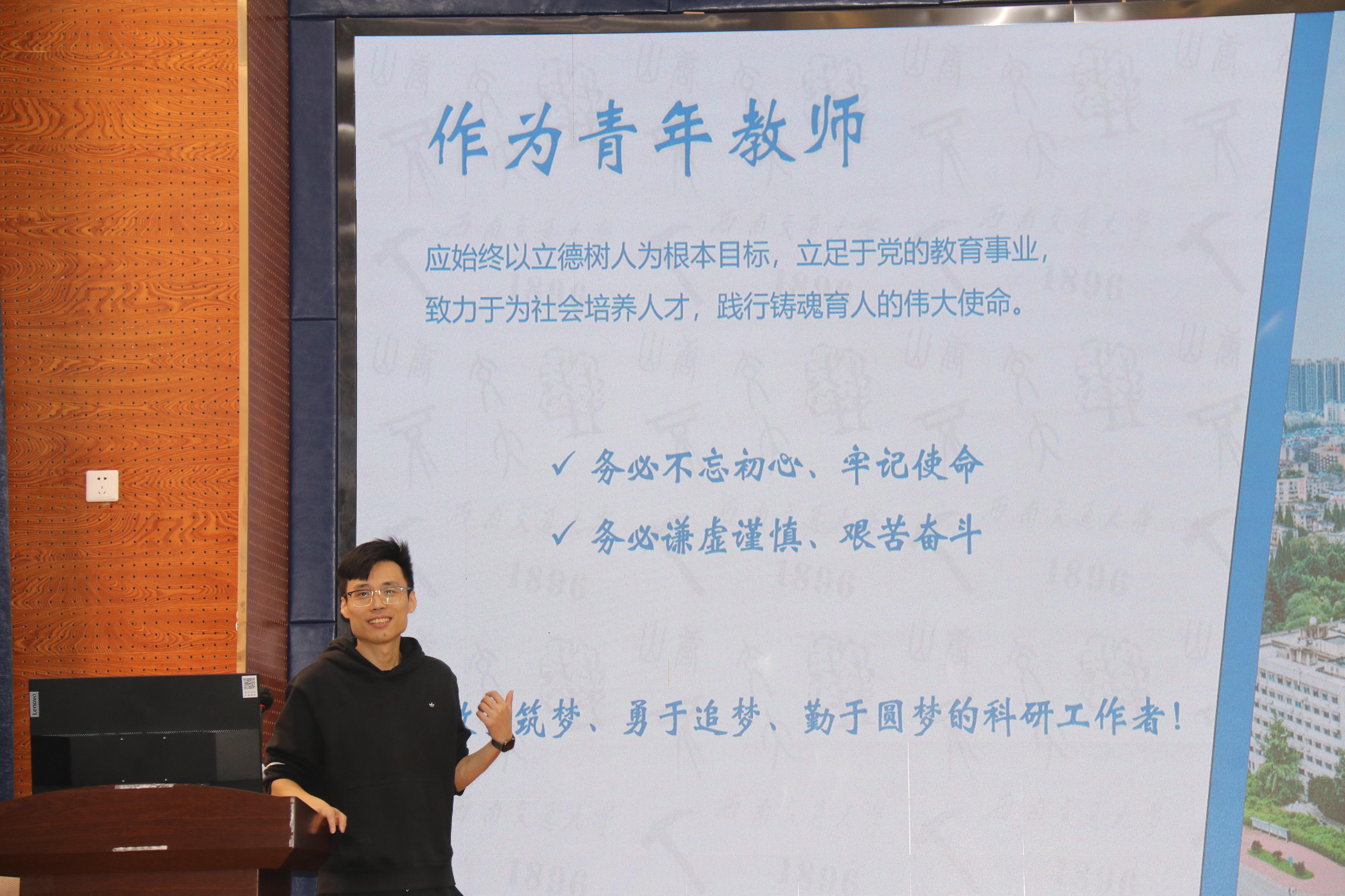 马锋、冯琳、卢朝阳、孙晓杰四位老师,作为青年教师的优秀代表,分别就作为导师如何培养学生、青年教师如何开展科研工作、如何做好班主任或班导师、自然科学基金项目申报等话题,通过生动而用心的讲解,向大家作了深入的分享。