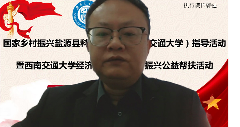 活动伊始,西南交大英国上市365官网执行院长郭强致开幕词,他介绍了本次活动的背景,总结了英国上市365官网在乡村振兴帮扶领域所做的工作,并预祝英国上市365官网与盐源县共同开展的乡村振兴公益帮扶活动取得圆满成功。盐源县人民政府督学黄日古先生在致辞中指出,要积极为乡村振兴发展出谋划策,拓展农民增收途径,帮扶工作才能获得成效。