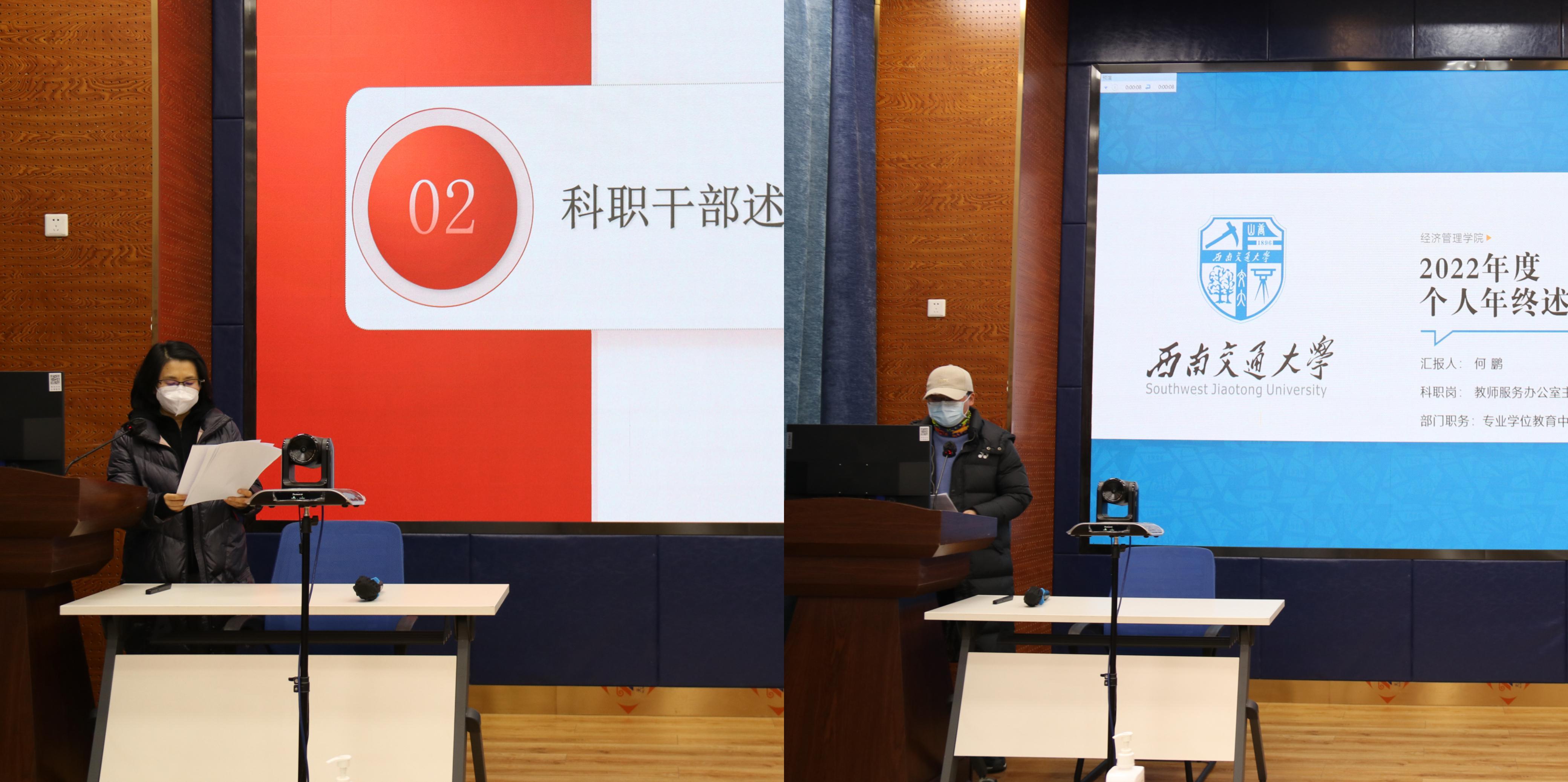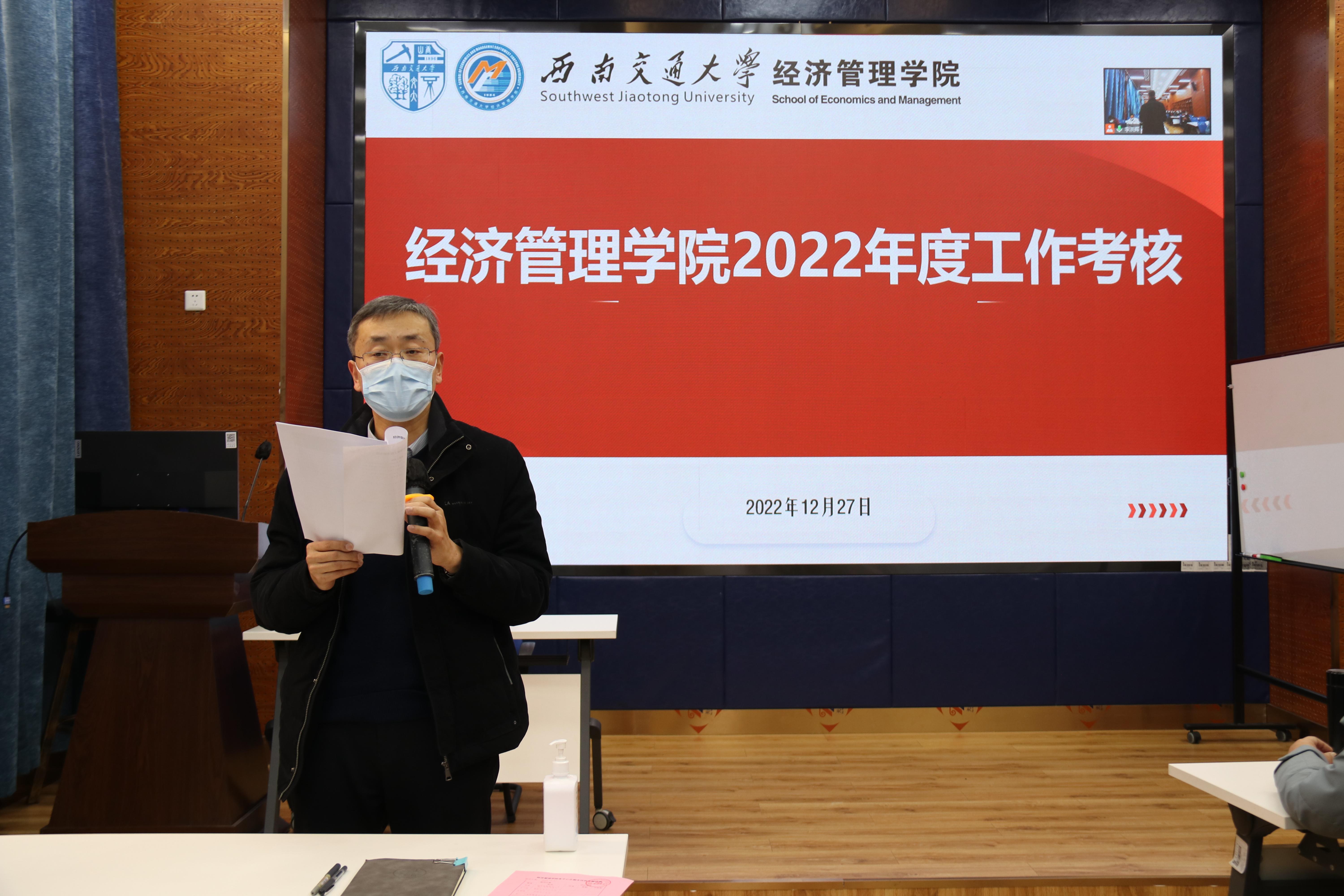 2022年12月27日下午2点,经济管理学院在九里校区0218会议室召开内设机构负责人2022年度工作述职评议考核会议。学院党政领导班子成员、各部门(中心、系)正副负责人、专业负责人、科职干部及教职工代表参加了述职评议考核会议,会议由学院党委书记王斌主持。