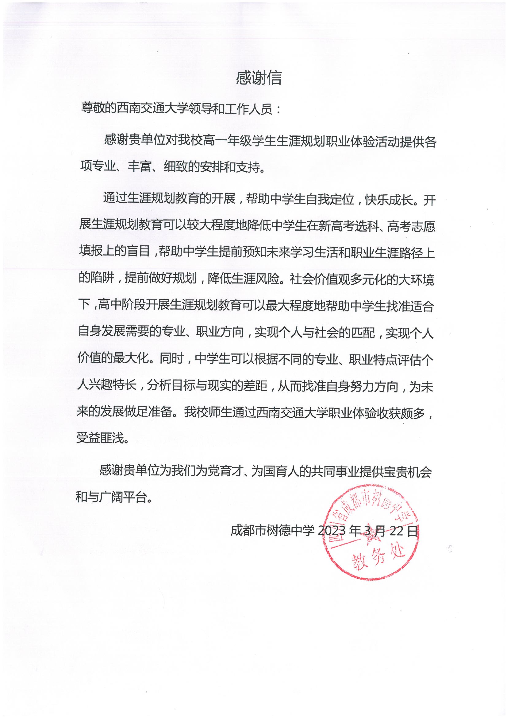 上午,365官网师生代表与大使团团员在校园南门热烈地迎接了树德中学的同学们。接着,大使团团员带领同学们参观了我校九里校区。参观活动持续约两个小时,树德中学的同学们深入了解了“竢实扬华,自强不息”的交大精神。