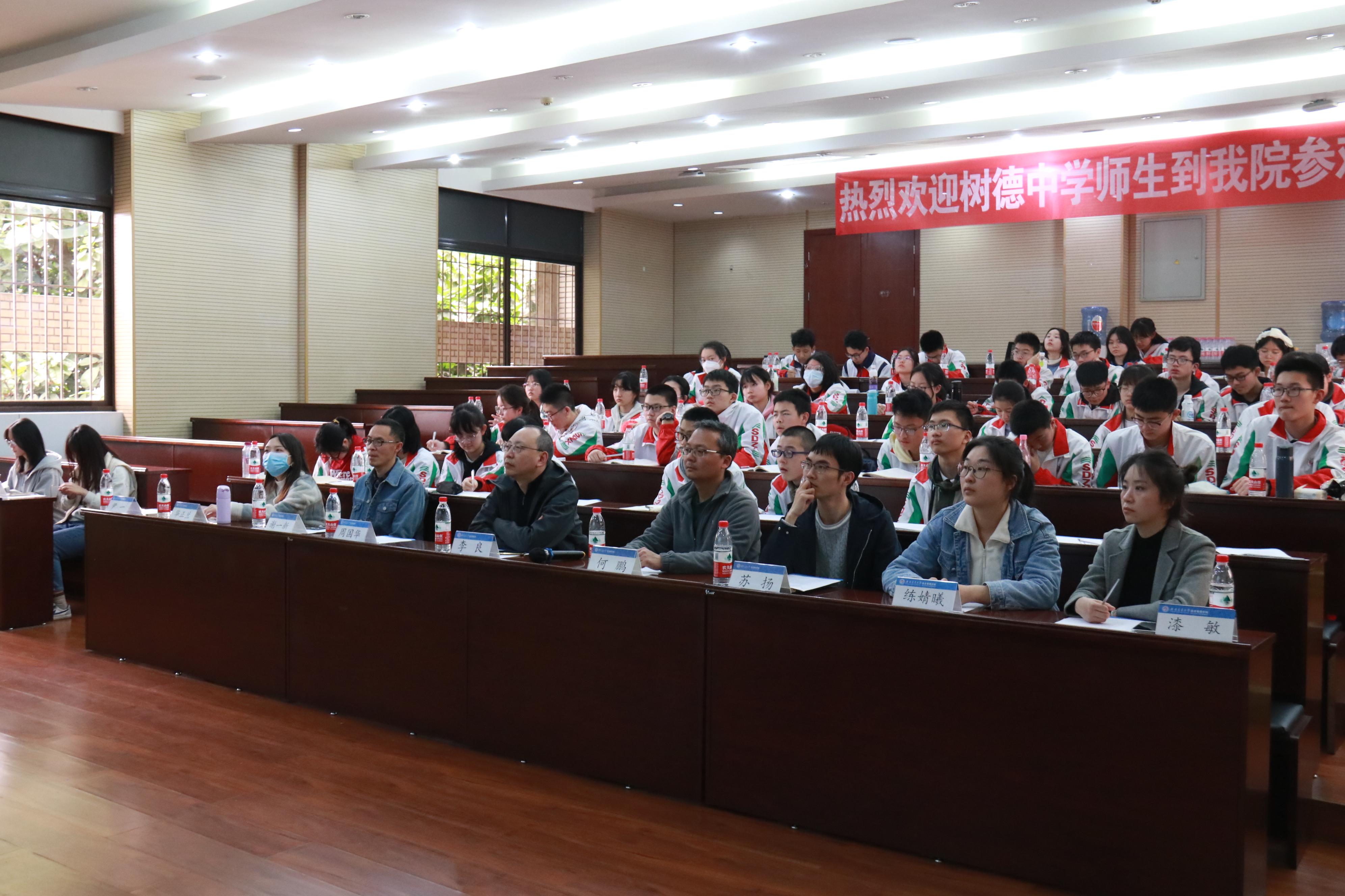 为进一步落实立德树人根本任务,做好高校与高中的衔接工作,帮助中学生更好地了解大学、走进科研与开拓视野,3月22日,在经济管理学院的精心组织和安排下,成都树德中学的50名师生代表到我校九里校区,领略大学文化,体验大学生活,并与365官网师生展开了友好交流。