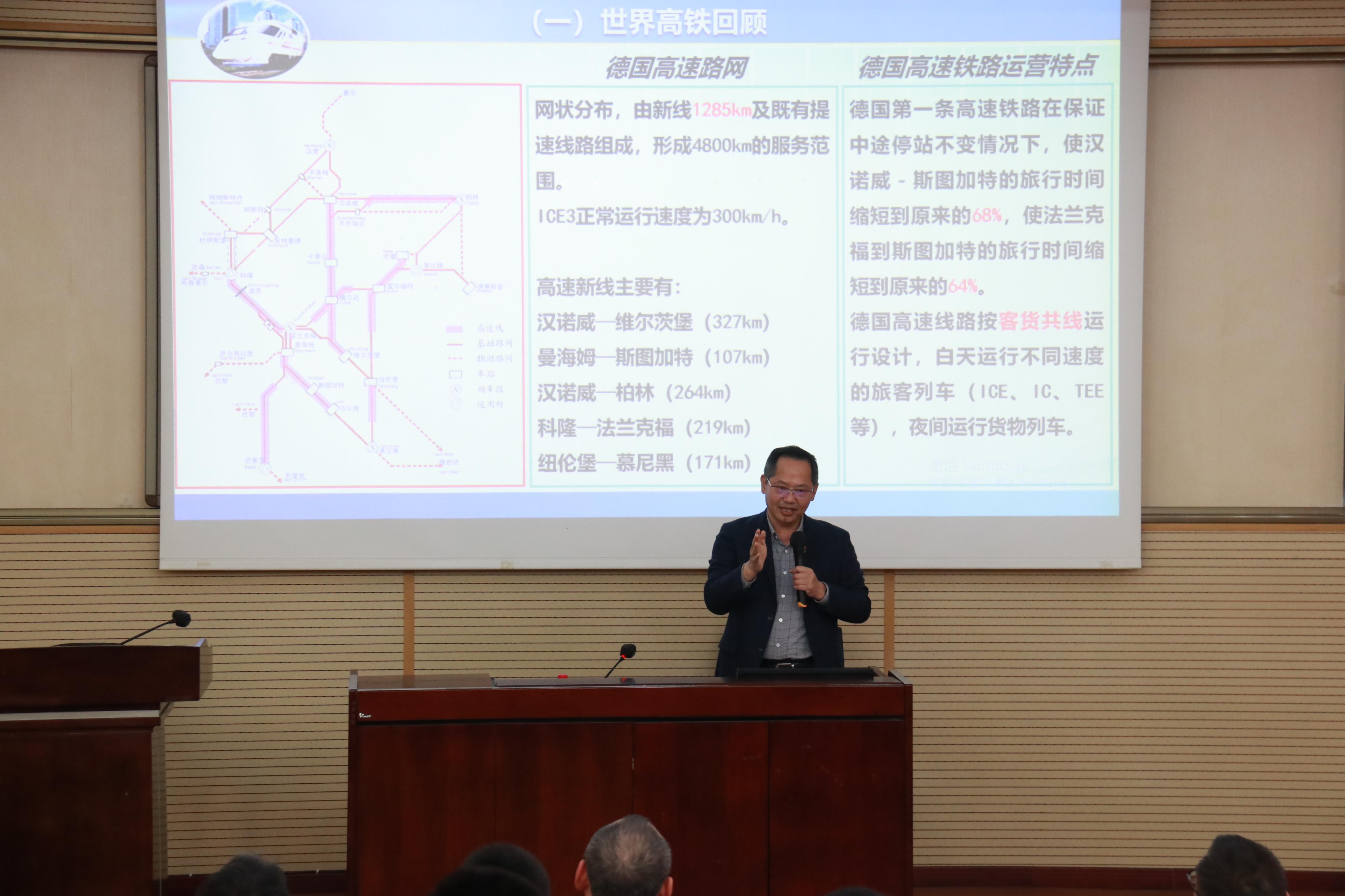 接着,周国华教授为同学们开展了题为《高铁过去、现在与未来》的专题讲座。周教授谈道,中国高铁已经成为了我们国家一张全新而亮丽的名片,集中展示中国速度、中国智慧、中国力量,让全世界看到了中国高铁所代表的“中国速度”的成功与自信,发展与未来。英国上市365官网作为研究高铁技术的重要科研力量和人才培养摇篮,为中国高铁发展做出了重要贡献。最后,周教授寄语同学们认真学习,积极投身交通强国铁路先行的研究创新事业中去。