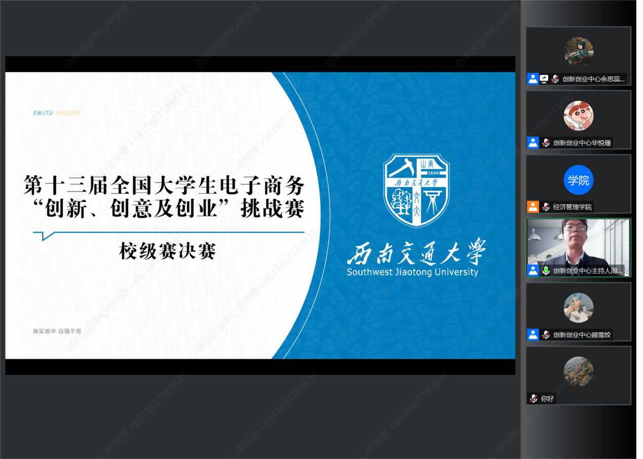 决赛于4月8日下午2点在腾讯会议进行,主持人周志远宣读比赛规则及流程并介绍评委老师。15支传统赛道队伍与1支实战赛道队伍按照抽签顺序,从市场需求、市场前景、融资方案、盈利模式、风险分析、项目可行性、公司战略和营销战略等方面进行PPT的在线演示与线上答辩,五位评委老师就展示内容进行提问,参赛队员回答问题。16支队伍答辩结束后,主持人致辞,宣布决赛结束。
