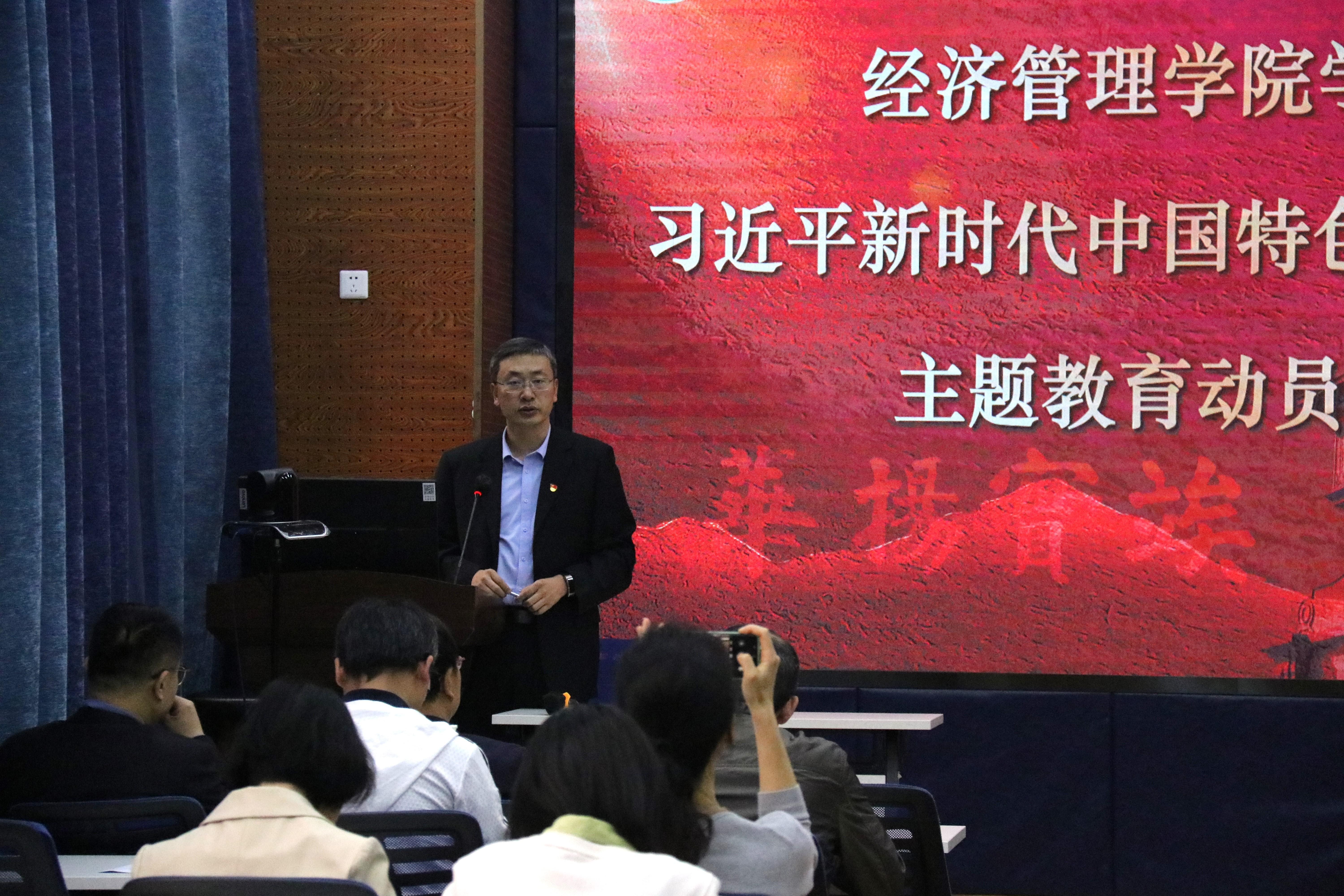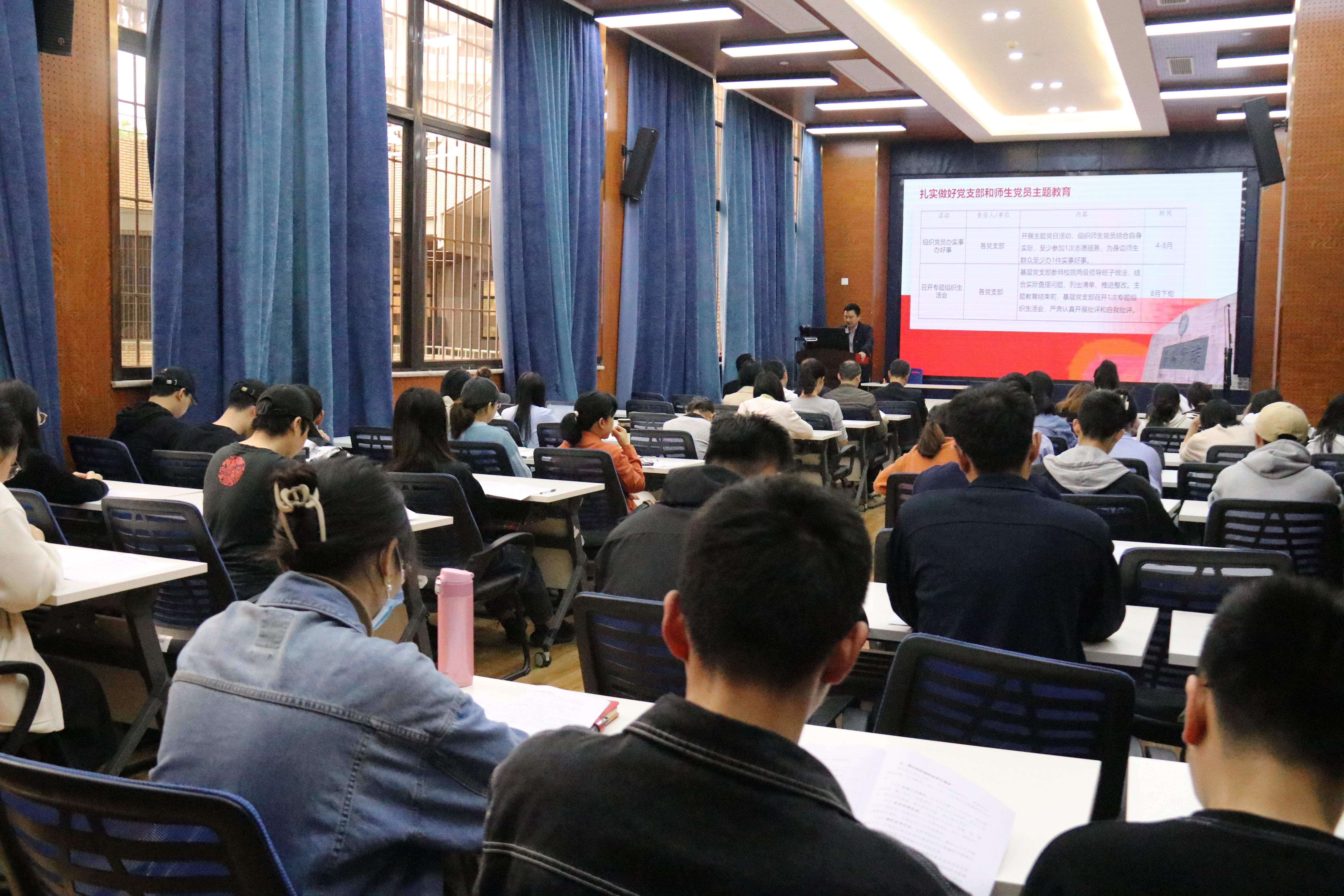 党委副书记晏理斌同志从五个方面向大家传达了此次主题教育的精神,并介绍了学院主题教育实施方案。第一,要准确把握目标要求。此次开展学习贯彻习近平新时代中国特色社会主义思想主题教育,总要求是“学思想、强党性、重实践、建新功”,根本任务是坚持学思用贯通、知信行统一,把习近平新时代中国特色社会主义思想转化为坚定理想、锤炼党性和指导实践、推动工作的强大力量,始终保持统一的思想、坚定的意志、协调的行动、强大的战斗力,努力在以学铸魂、以学增智、以学正风、以学促干方面取得实实在在的成效。具体目标是凝心铸魂筑牢根本、锤炼品格强化忠诚、实干担当促进发展、践行宗旨为民造福、廉洁奉公树立新风,着力解决理论学习、政治素质、能力本领、担当作为、工作作风、廉洁自律6个方面的问题。第二,学院成立了主题教育领导小组及工作机构,专人负责主题教育专项工作,以确保主题教育工作质量。第三,要认真落实重点举措。一是要开展理论学习、集中研讨学习、带头宣讲学习;二是要开展调查研究,明确调研重点,优化方式方法;三是要推动发展,增强抓发展的政治本领,增强抓发展的担当自觉,增强抓发展的能力素质,实现强党建促发展,实现防风险护安全,实现破难题开新局,实现办实事暖民心;四是要检视整改,在本次主题教育后要开展党性分析并进行整改整治;五是要建章立制,把“当下改”与“长久立”结合起来,对主题教育中形成的好经验好做法及时以制度形式固化下来。在夯实不忘初心、牢记使命的制度和推进党史学习教育常态化长效化基础上,进一步健全完善学习贯彻党的创新理论制度机制,持续巩固深化主题教育成果。第四,要扎实做好党支部和师生党员主题教育,以党支部为单位,依托“三会一课”、主题党日等进行。学院党委制定了党支部及师生党员主题教育活动任务清单,由各党支部及师生党员对照执行。第五,要强化组织领导和责任落实,在整个主题教育中要加强工作领导,务求取得实效,强化宣传引导,力戒形式主义。