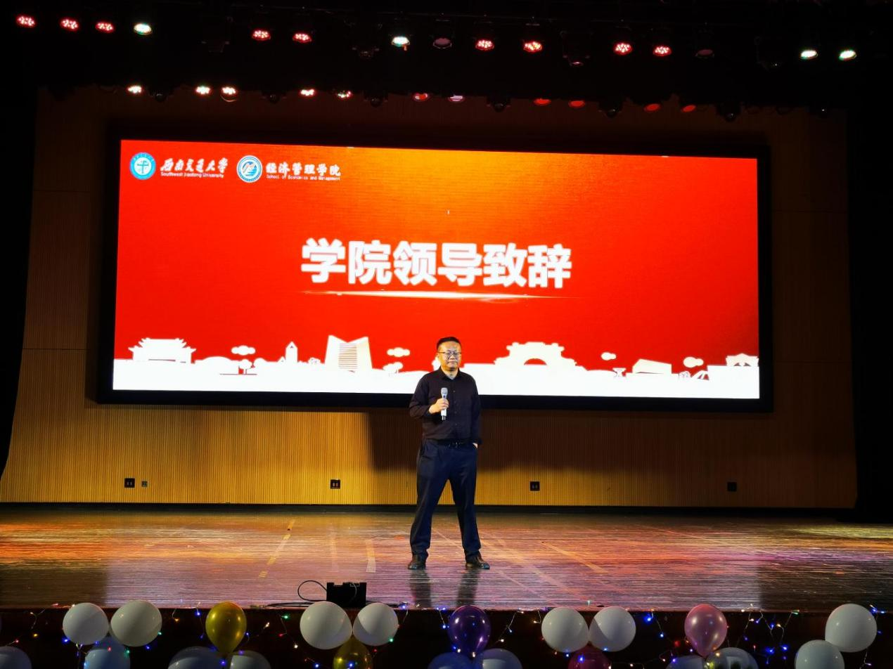 365官网执行院长郭强为本次晚会致辞,郭院长对经管学子一直以来的努力奋斗表达了积极的肯定与鼓励,并热切期盼大家能够不负青春韶华,书写自己精彩的人生华章。