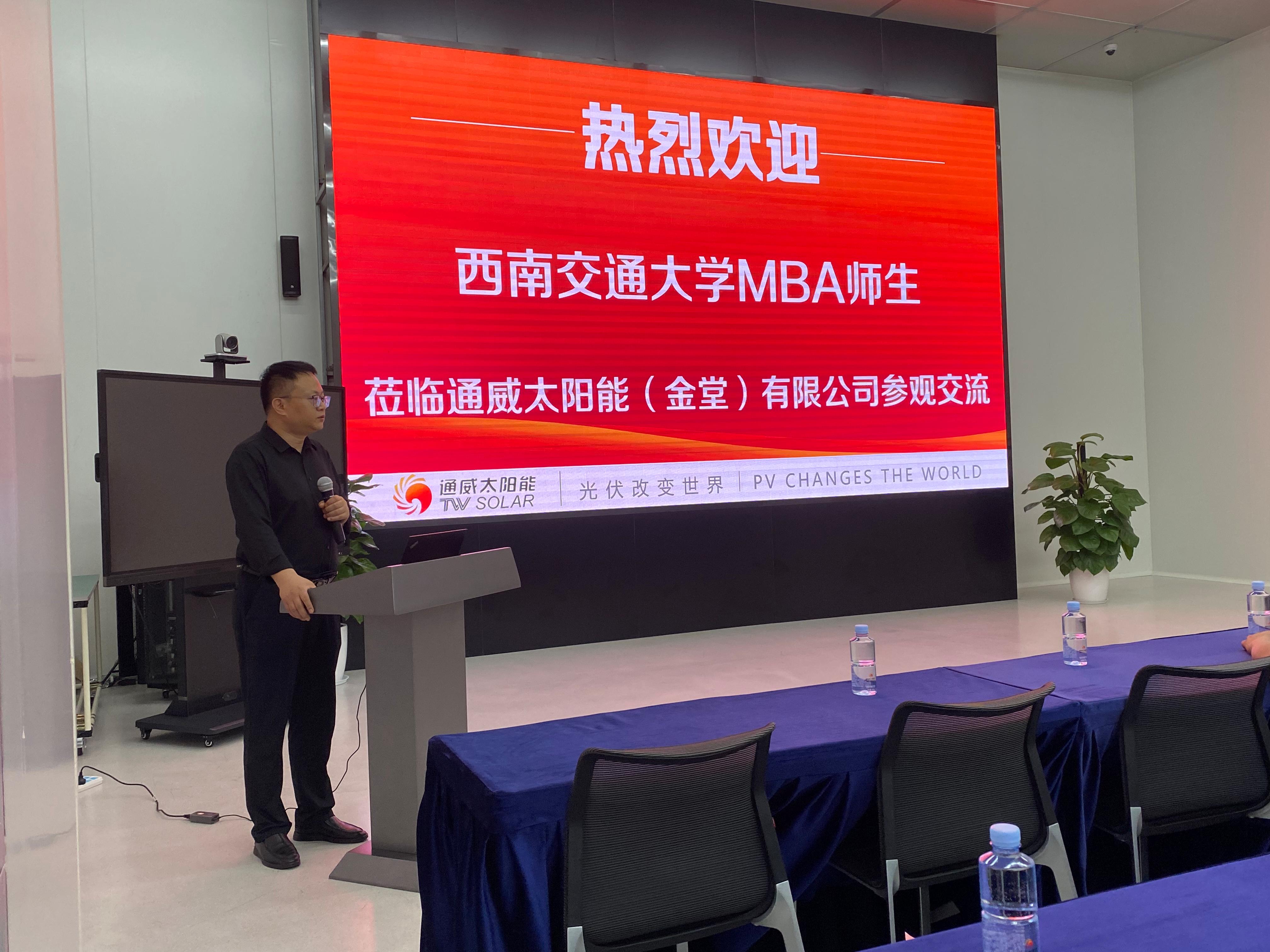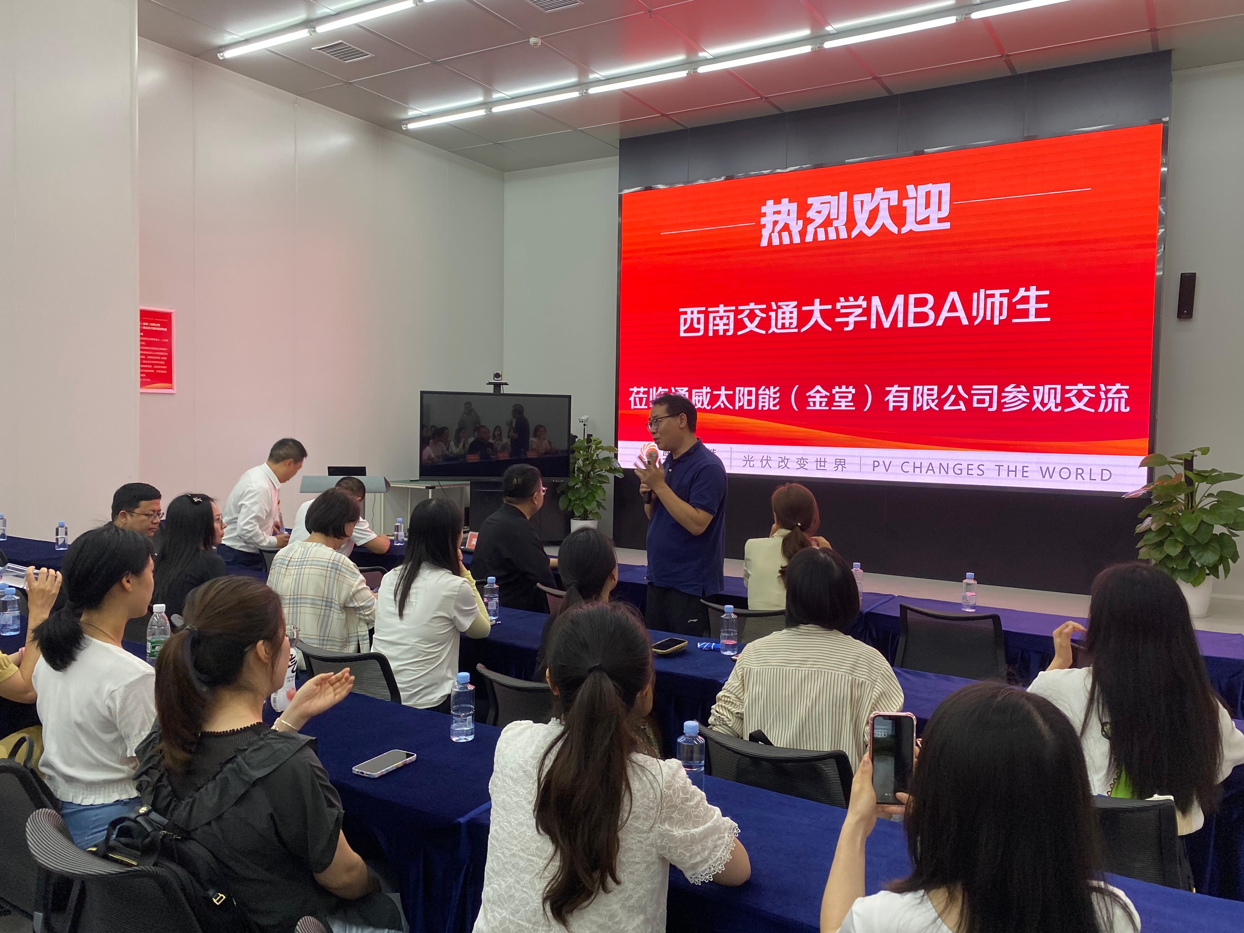 2023年5月20日,英国上市365官网执行院长郭强、2022级MBA班主任向洪信、MBA教学副主管马广平,带队2022级周末四班学员前往通威太阳能(金堂)有限公司进行参观访学交流活动。